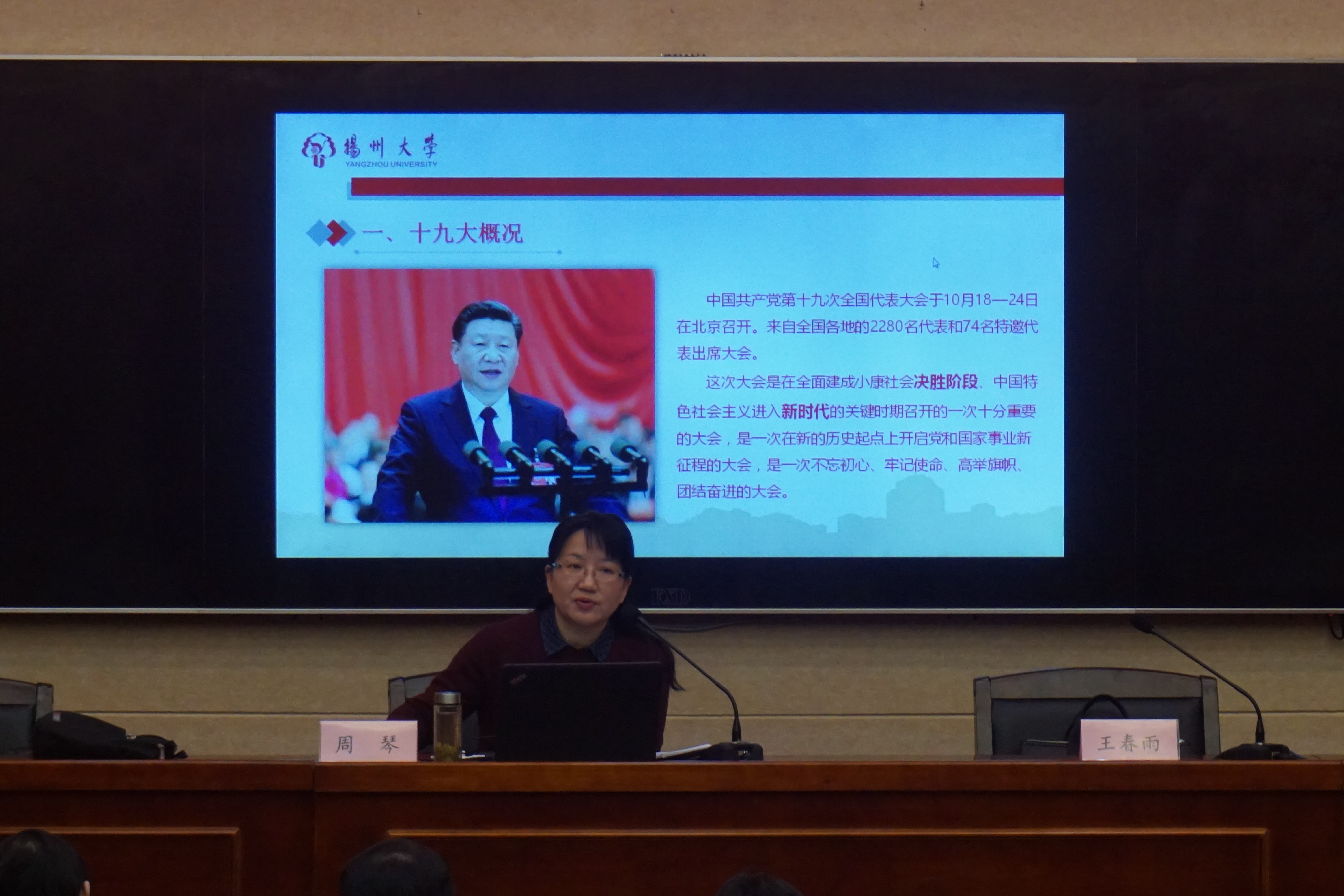 根据校党委统一部署,12月20日下午,校纪委书记周琴在瘦西湖校区数学学院报告厅,为纪委办、监察处、对外联络办公室、物理科学与技术学院、美术与设计学院的师生党员,作题为“不忘初心,牢记使命”的党的十九大精神宣讲报告。