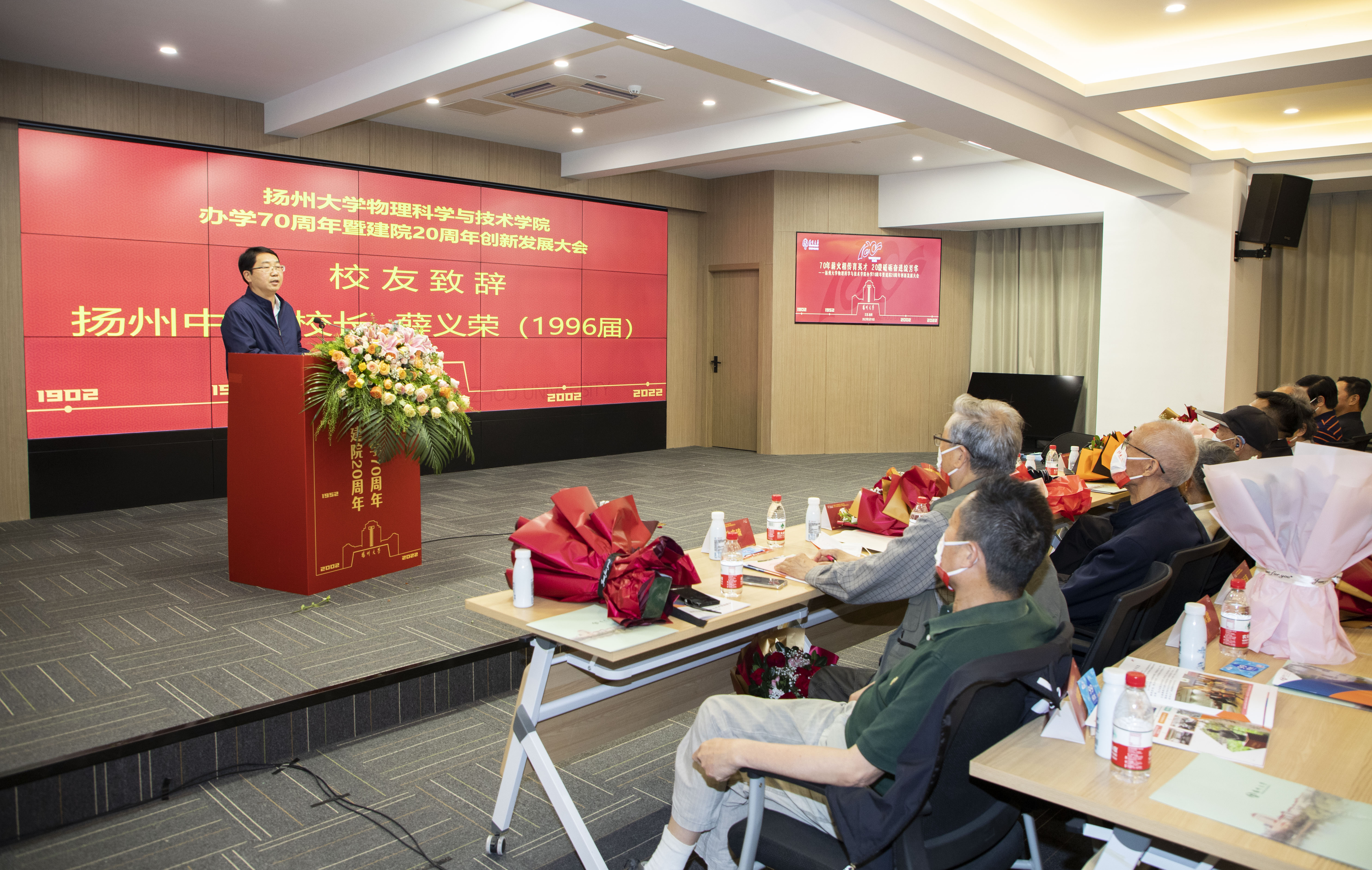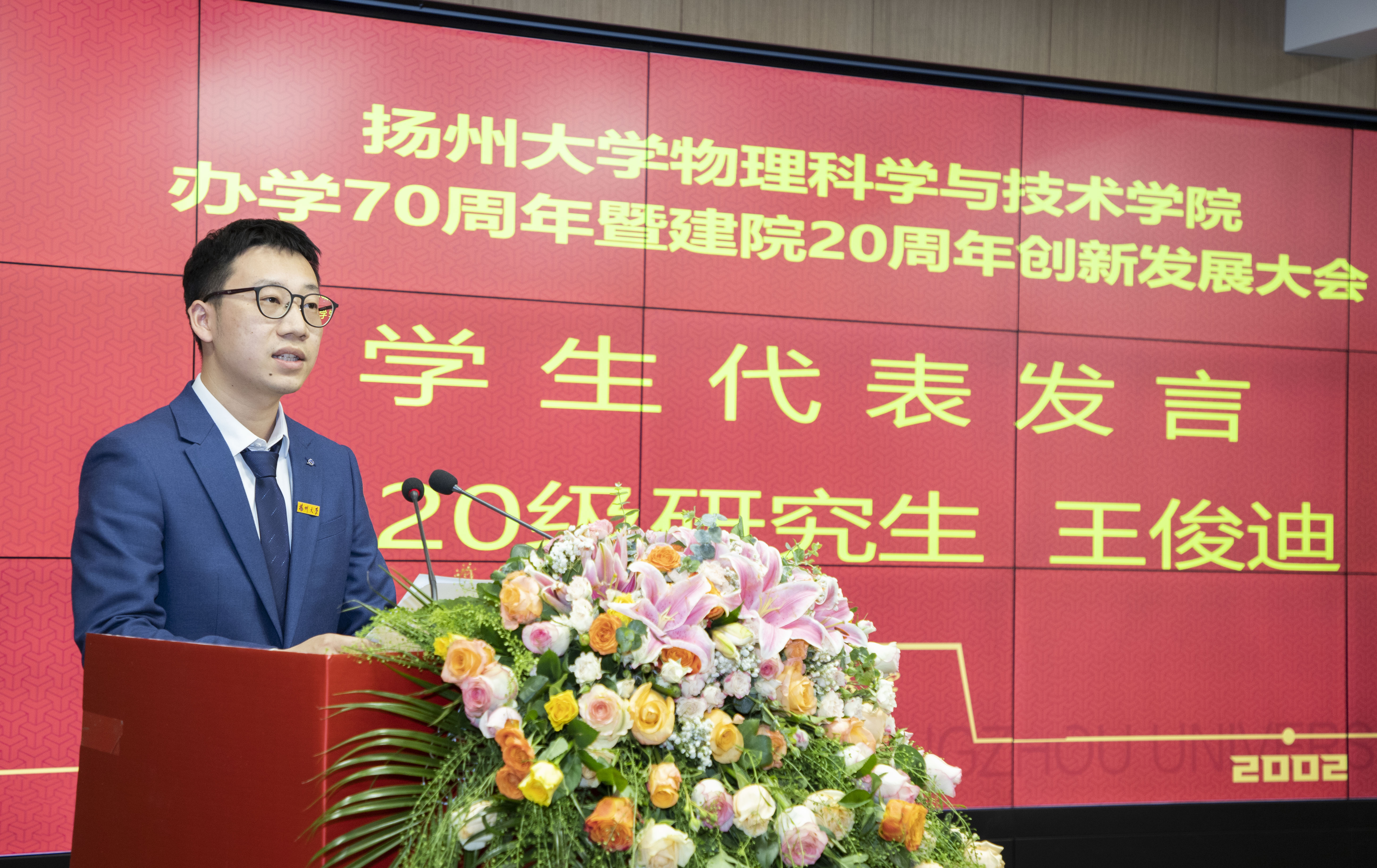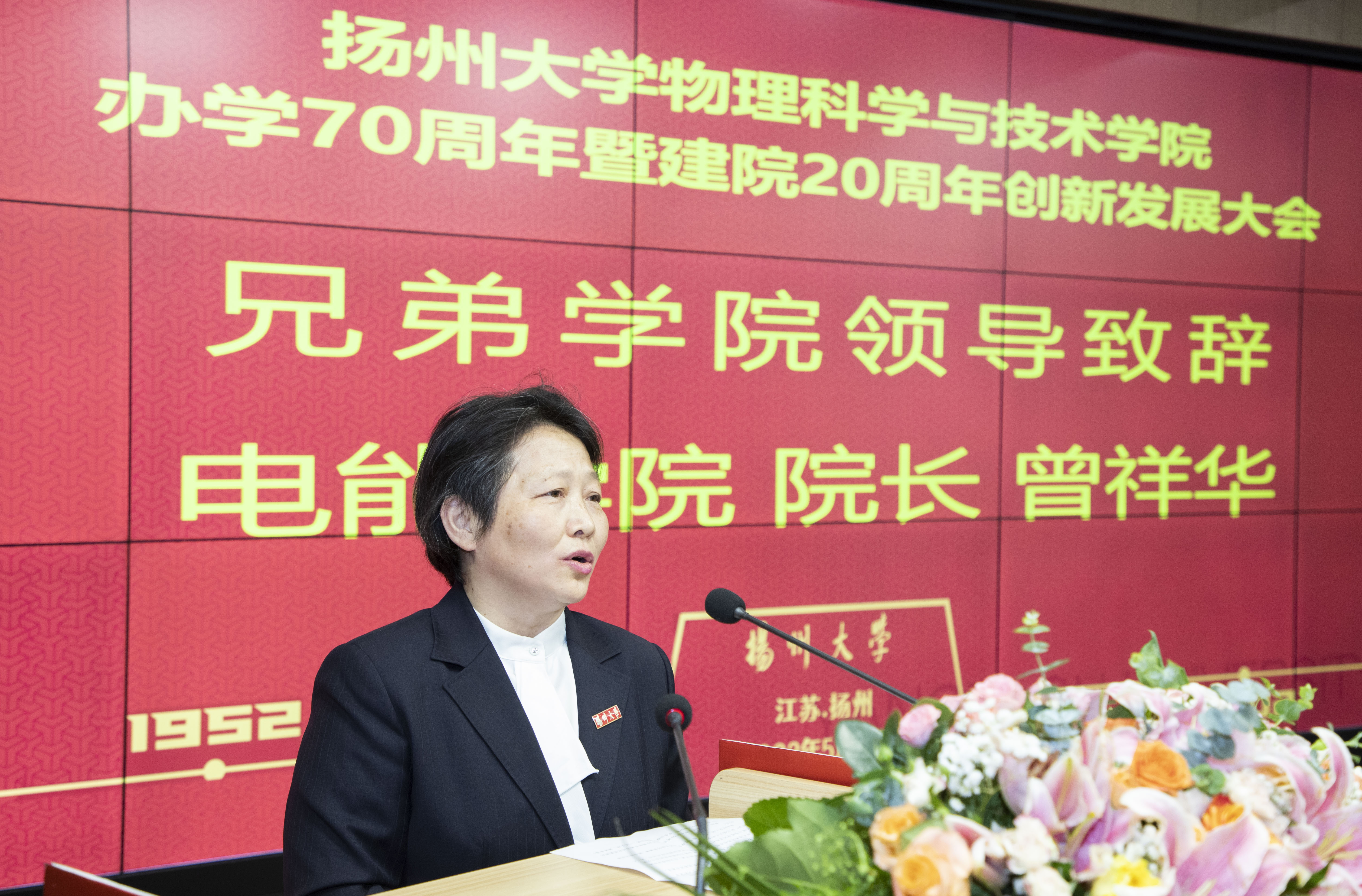 在“共享盛典 共商发展”环节,南京大学物理学院院长、1986届校友王伯根,扬州中学校长、1996届校友薛义荣,学院首任院长陈小兵教授,兄弟学院领导、电气与能源动力工程学院院长曾祥华教授分别发言,祝福学院生日快乐,祝愿学院站在新起点,谱写新篇章,开启新征程,创造新辉煌!