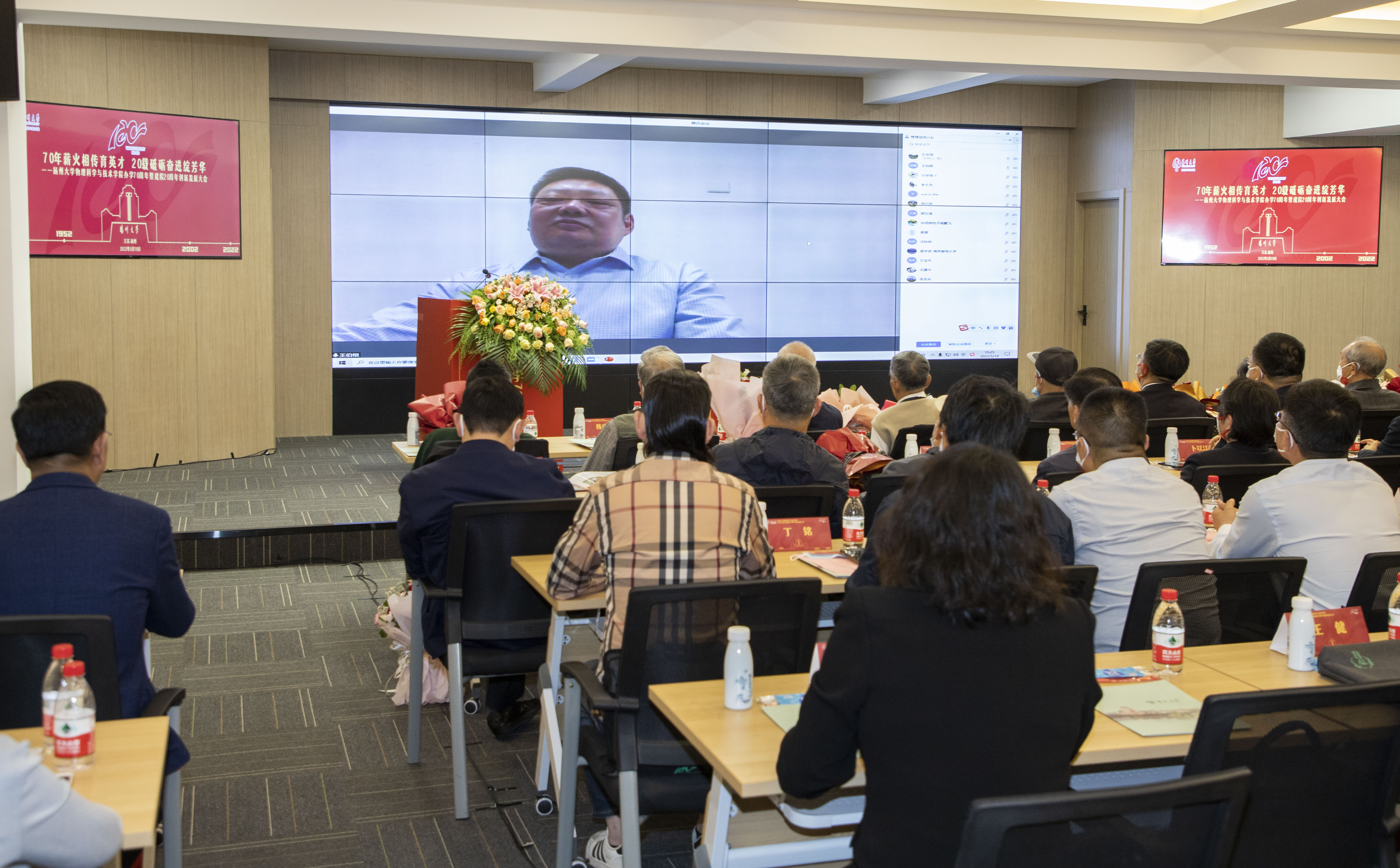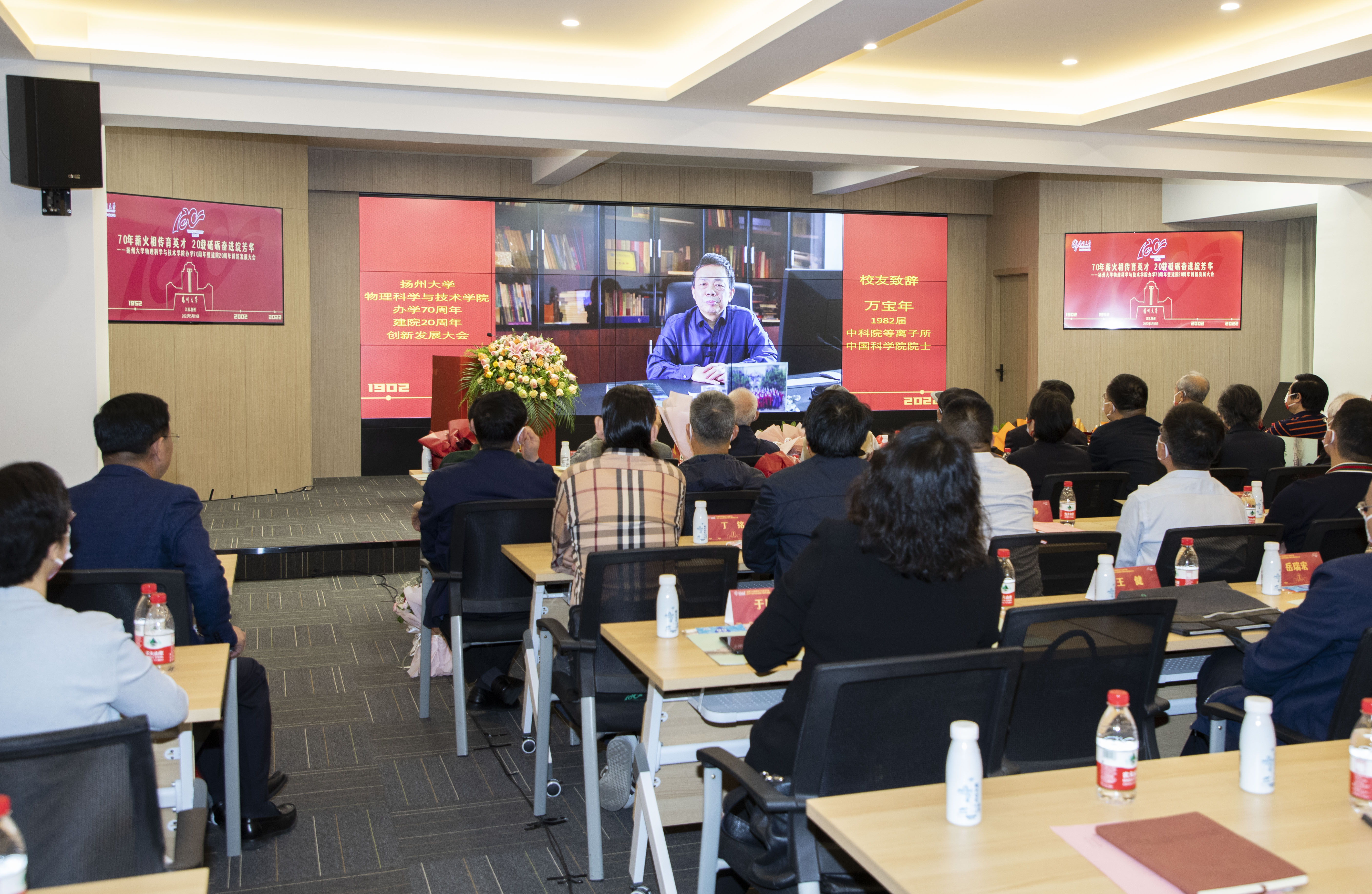 大会开始前,与会人员共同观看《70年薪火相传育英才,20载砥砺奋进绽芳华》学院发展巡礼宣传片,观看各地校友发来的“云祝福视频”,并与中国科学院院院士、1982届校友万宝年,学院老领导葛建枢及无锡华润微电子有限公司等进行了视频连线。