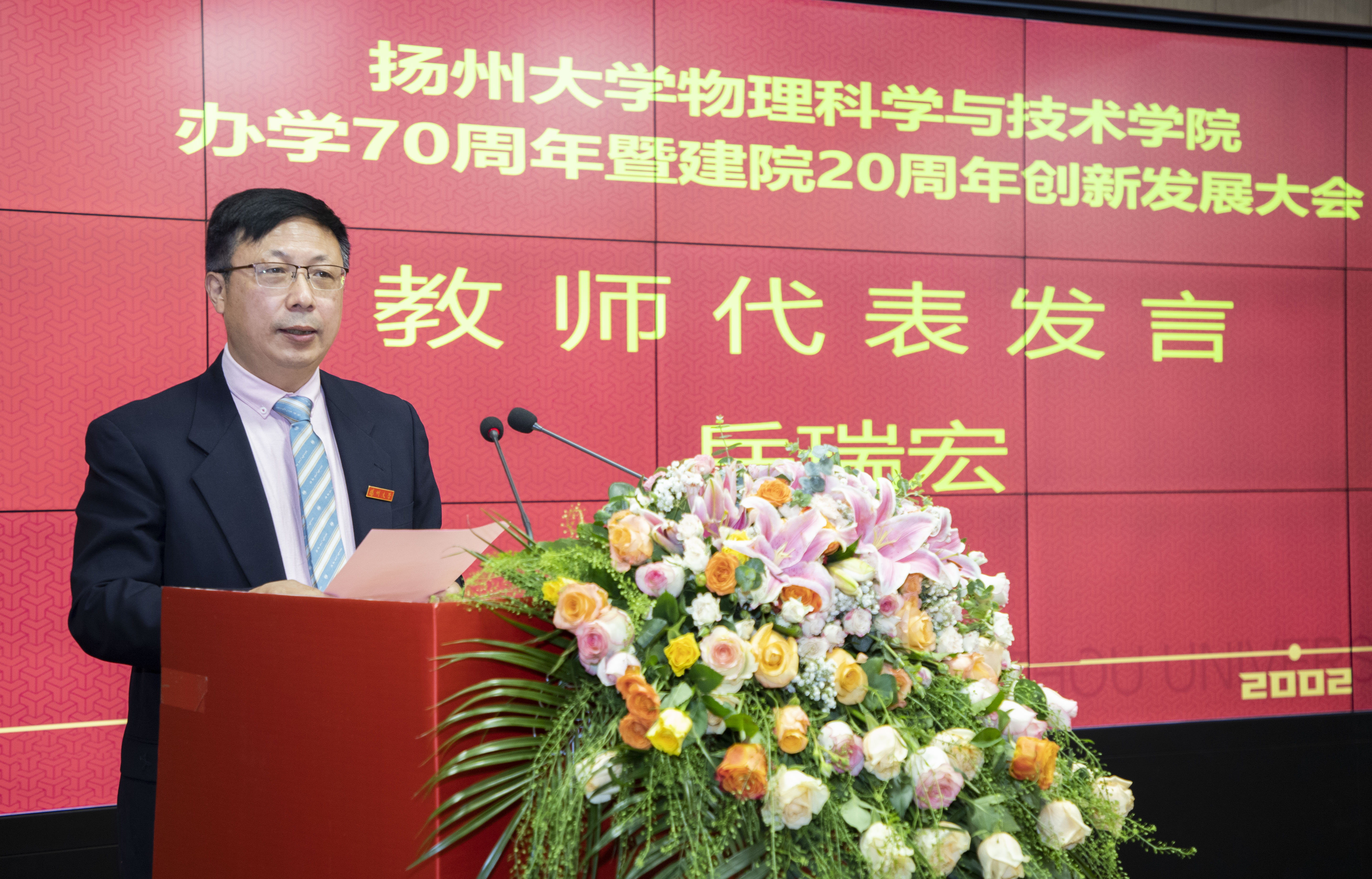 洪涛副校长在致辞中对学院工作进行肯定和勉励。他指出,物理学院70年来在教学科研、人才培养、学科建设、社会服务等方面取得了一系列标志性成果;他希望,物理学院能以此次创新发展大会为契机,抢抓发展新机遇,进一步凝心聚力,加强内涵建设,取得更大成就。