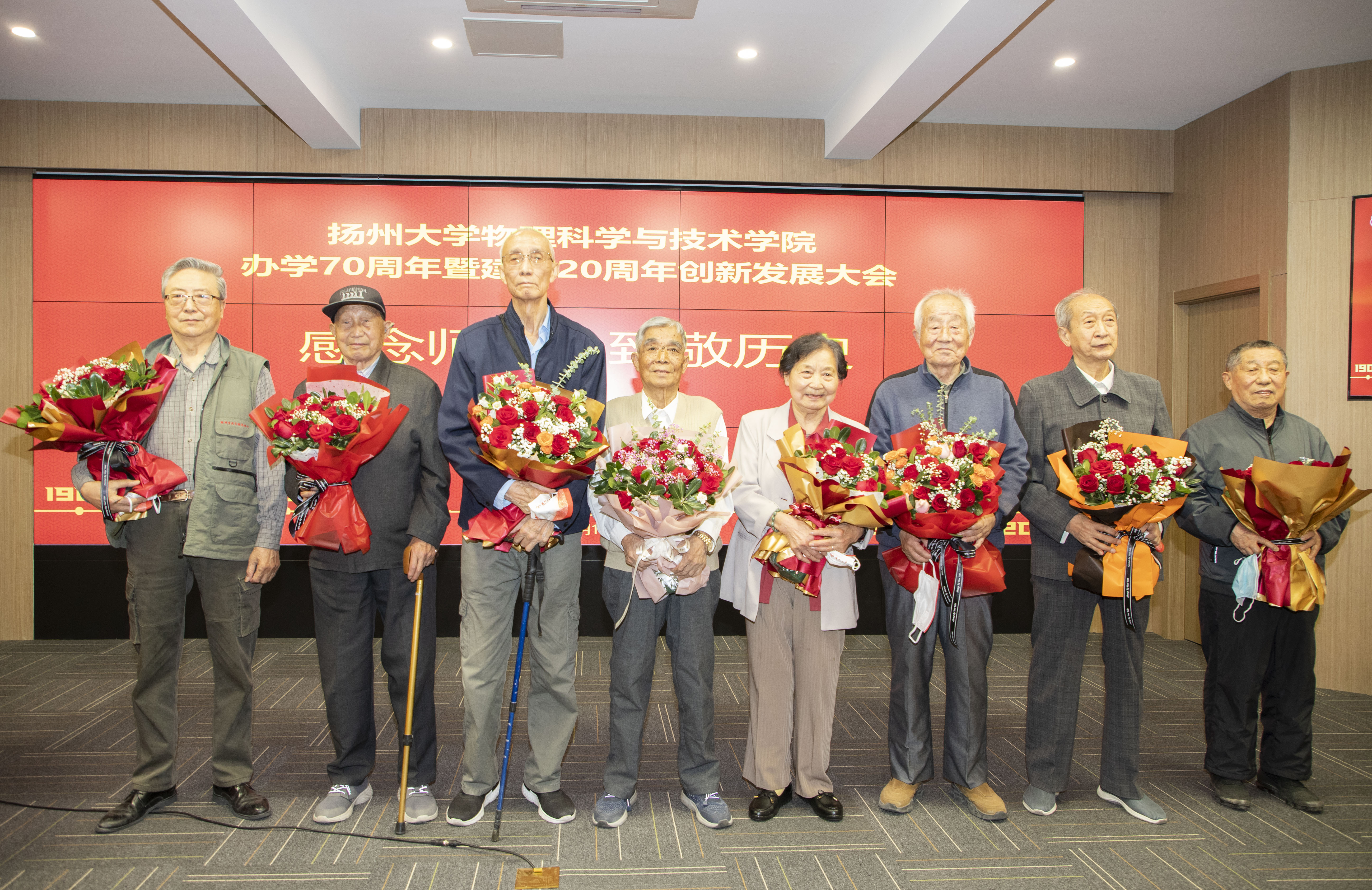 在“感念师恩 致敬历史”环节,学生代表上台向曾在系科、学院工作的老领导、老教师献花,表达全体师生“吃水不忘挖井人”,对老领导教师的感恩、感谢之情。