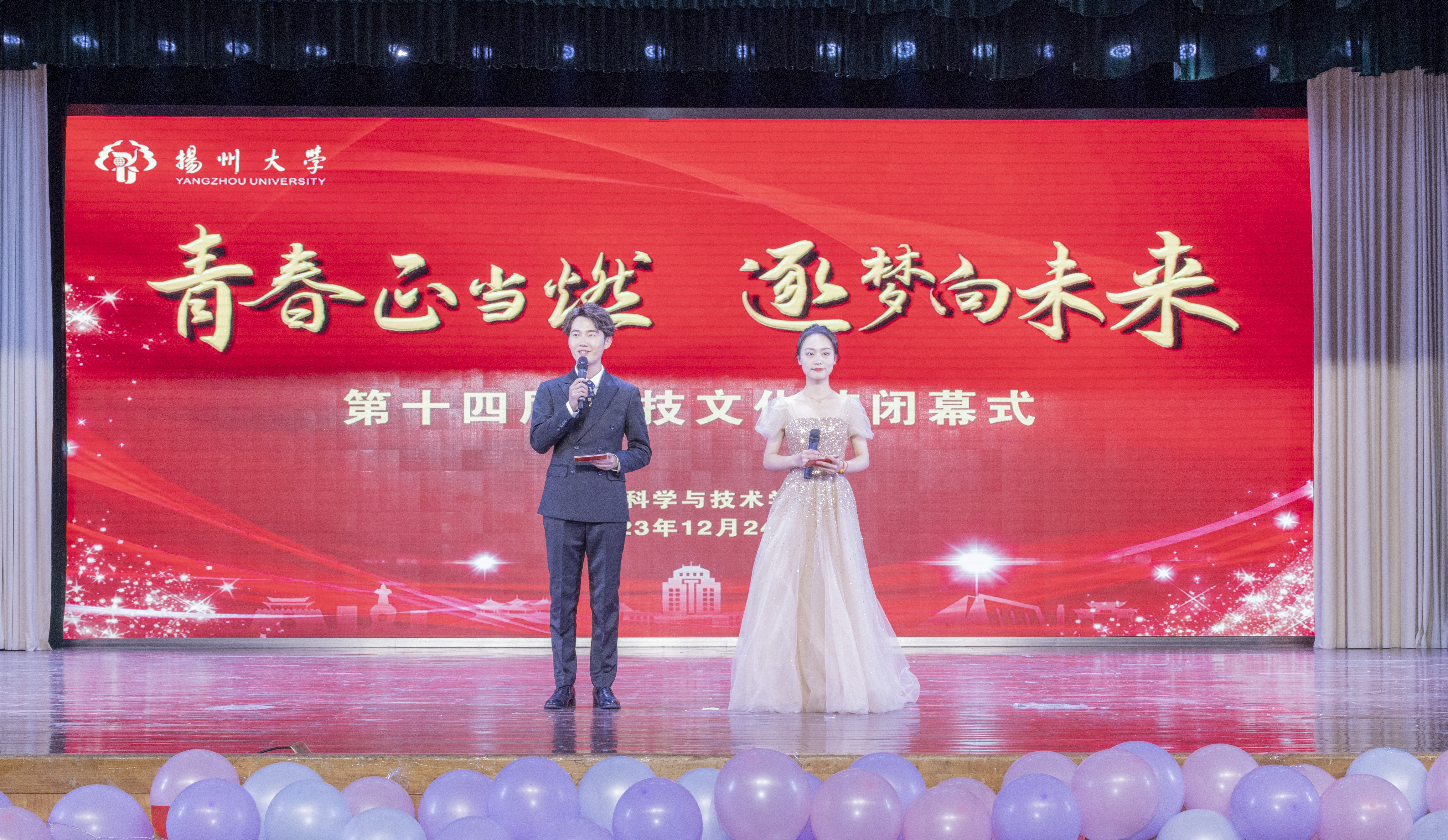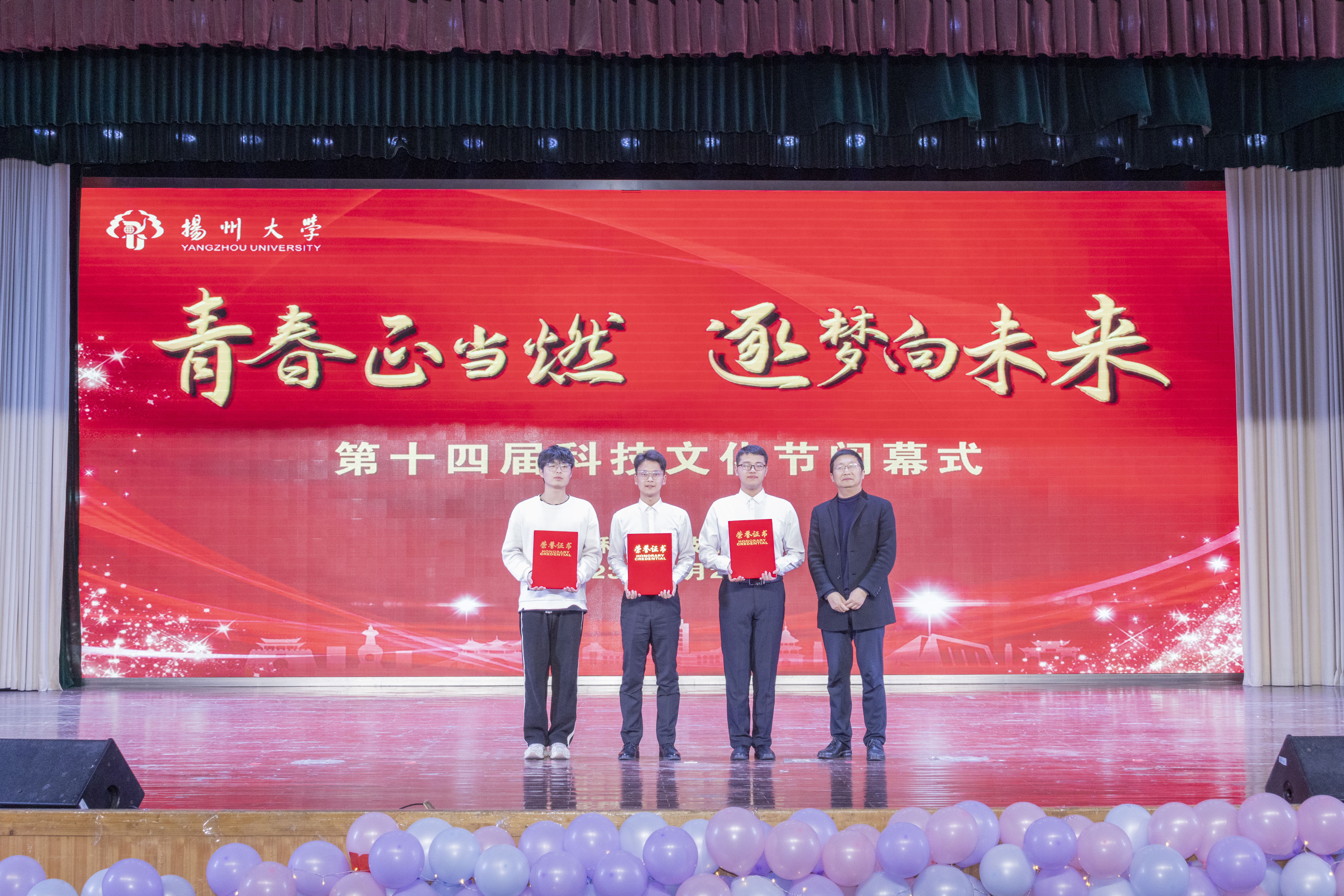 12月24日晚,我院于荷花池校区大学生活动中心三楼小剧场举办了第十四届科技文化节闭幕式。校党委常委、宣传部部长张信华老师,校党委常委、组织部部长孙鹏老师,校教务处处长严长杰老师,校党委研究生工作部部长吴刚老师,校党委学生工作部部长、学生工作处处长施林峰老师,校后勤保障处处长、后勤党总支书记朱春生老师,校党委保卫部部长、保卫处处长、人武部部长姚永明老师,校关工委副主任赵春丹老师,校就业指导中心主任陈轶群老师,校团委副书记王敏老师,校关工委顾问刘方云老师,以及全体院领导、院关工委老师,各系部主任,院办公室、团委老师,在校生代表参加活动。