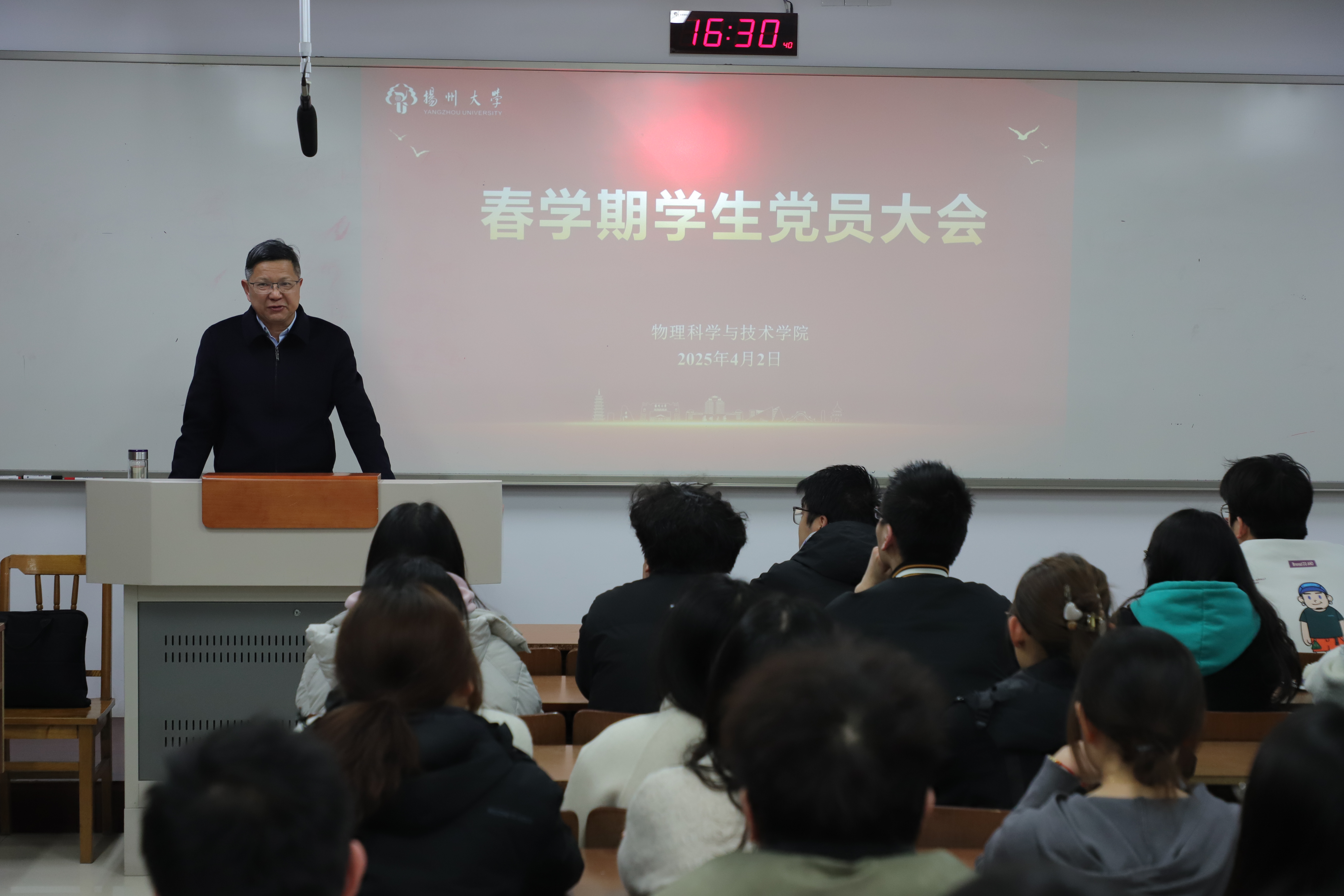 4月2日下午,我院党委书记王春雨在8号楼N101教室为全体学生党员讲授专题党课。通过系统传达全国两会精神,结合学校发展实际深入阐释教育、科技、人才“三位一体”战略部署,王春雨书记勉励青年党员勇担时代使命,在奋进新征程中展现先锋力量。