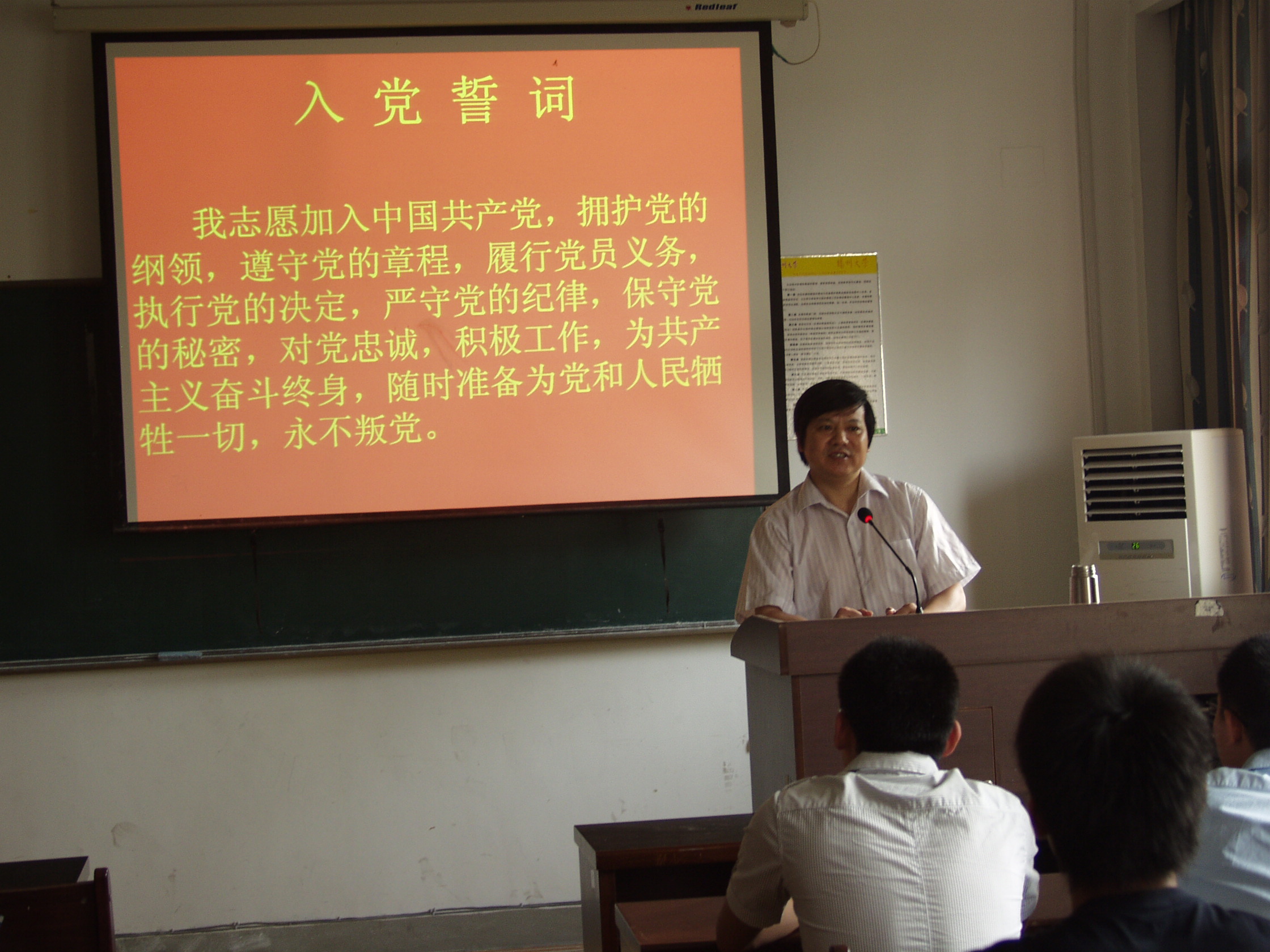 2009年6月18日,学院举行“新党员入党宣誓 老党员重温入党誓词”活动。会上,新老党员代表分别作了发言,党委黄庆华书记提醒党员们认真贯彻落实科学发展观,加强党风廉政建设,在学习、工作、生活中要起到榜样、示范、表率、带头作用,要求党员们时刻保持先进性、示范性和时代性。