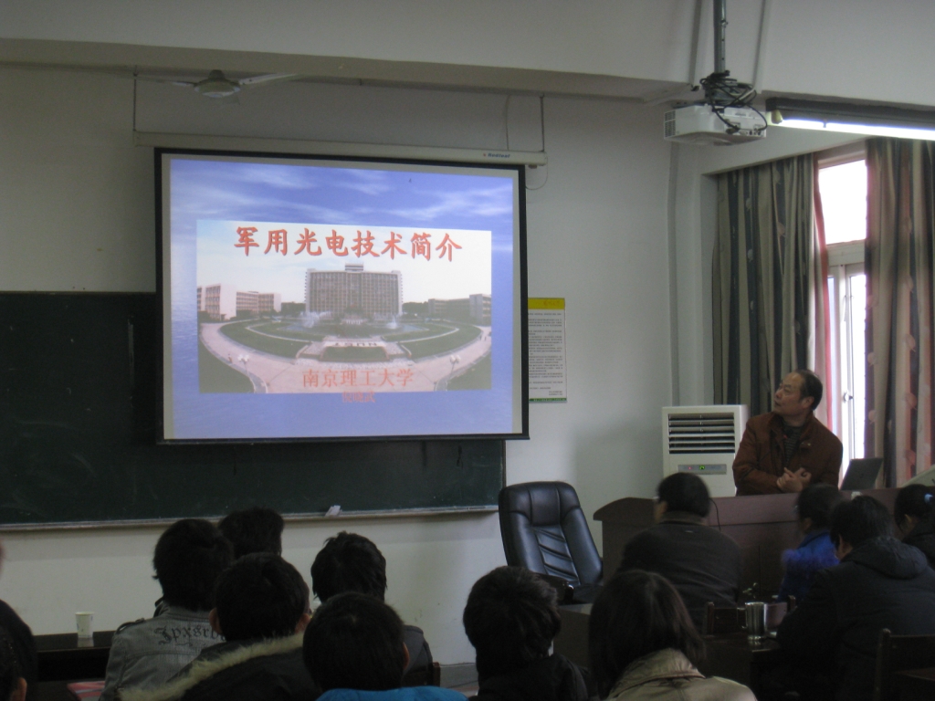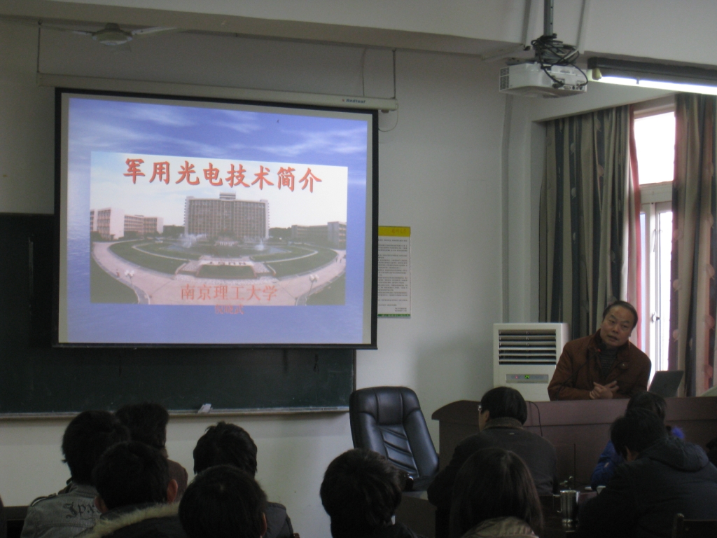12月18日下午,南京理工大学倪晓武博导访问我院,与我院做相关研究工作的老师亲切座谈,提了许多建设性的建议,并为师生作了一场“军用光电技术简介”的学术报告。