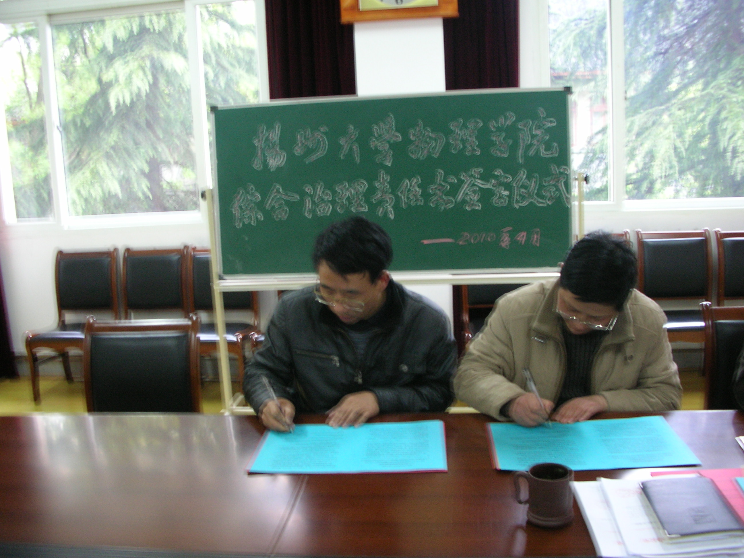 4月14日下午,我院召开2010年综合治理工作暨“爱国卫生月”活动动员会,王春雨副院长传达校综治工作会议和爱国卫生月活动动员会精神,并与各中心(部)、综合办公室、学工办负责同志签定了综治工作目标责任状和消防安全目标管理责任状。黄庆华书记、陈小兵院长、沈秋林副书记也出席了会议。