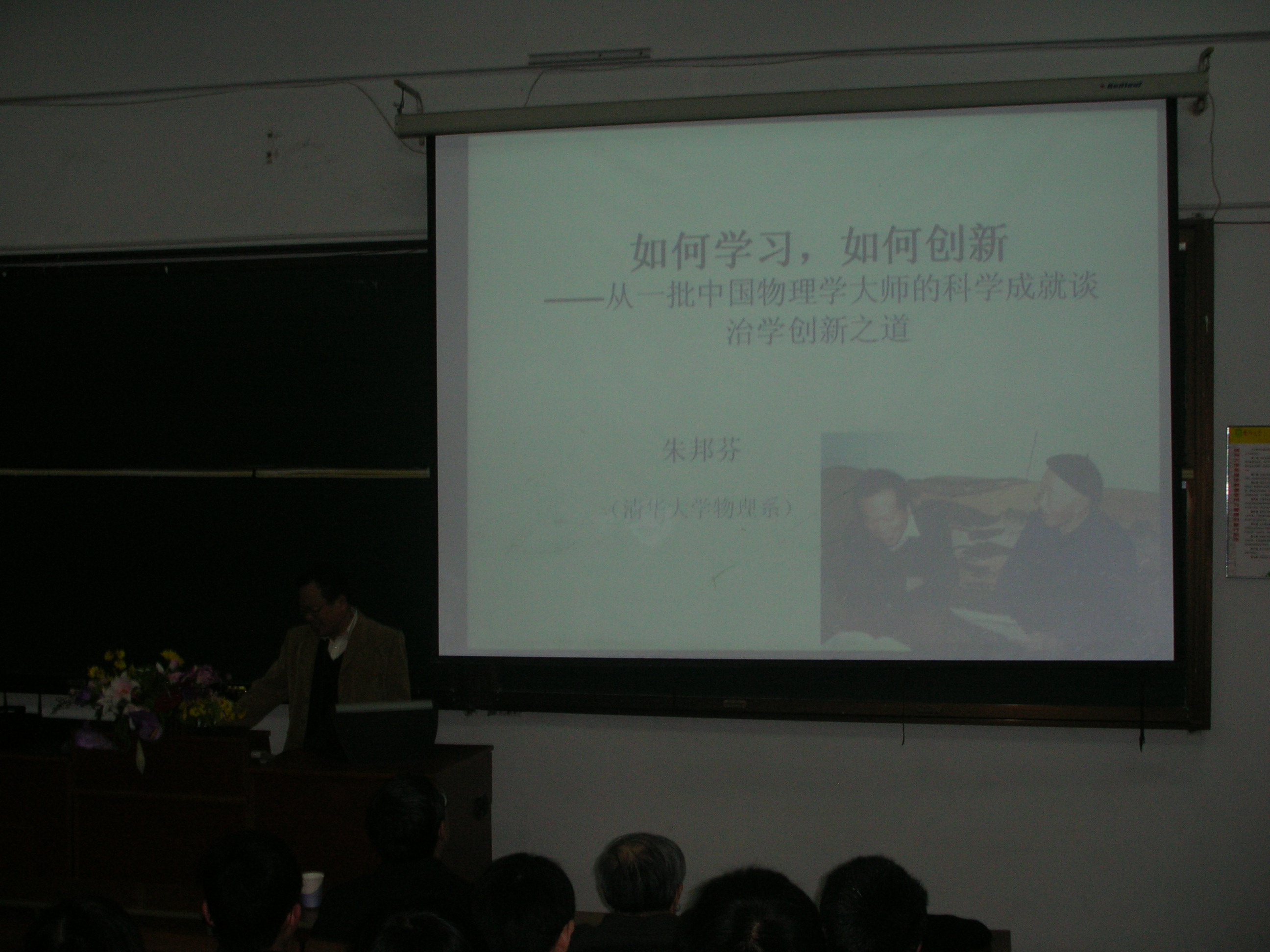 讲座伊始,朱邦芬院士首先指出了长期以来我国自然科学教育存在的不足,即偏重知识的传授而忽略了思考过程和创新能力的培养。关于学习方法与技巧方面,他列举了李政道、彭恒武、叶企孙、周光召等一批中国物理学大师的科学成就与成长经历,总结他们的治学之道与教学思想,创造性地提出学生学习贵在主动、自主,要与自己驾驭知识的能力相匹配而不是重量不重质,学得越多越好。他鼓励大家“彻底理解驾驭所学的知识,要有仰望星空的闲暇与兴趣”,博得全院师生的一致认可。针对同学们难以创新的困惑,他强调“善于学习”与“高度自信”是富于创新的首要条件。“年轻人虽然知识欠缺,但却敢于怀疑,贵在有自信心”。报告中,朱邦芬教授幽默生动地讲解了与其一起工作十五年的物理大师黄昆的创新史,结合黄昆的事迹阐述提出好问题是创新的第一步、在应用中创新、在解决疑难问题中创新、年近古稀亦能创新等独特观点,并鼓励大家要善于发现与提出问题,善于用简单模型解决复杂的问题,善于作出最重要、最有意义的结论。讲座后同学们深受启发,并向朱教授交流了本科教育中如何创新的问题。