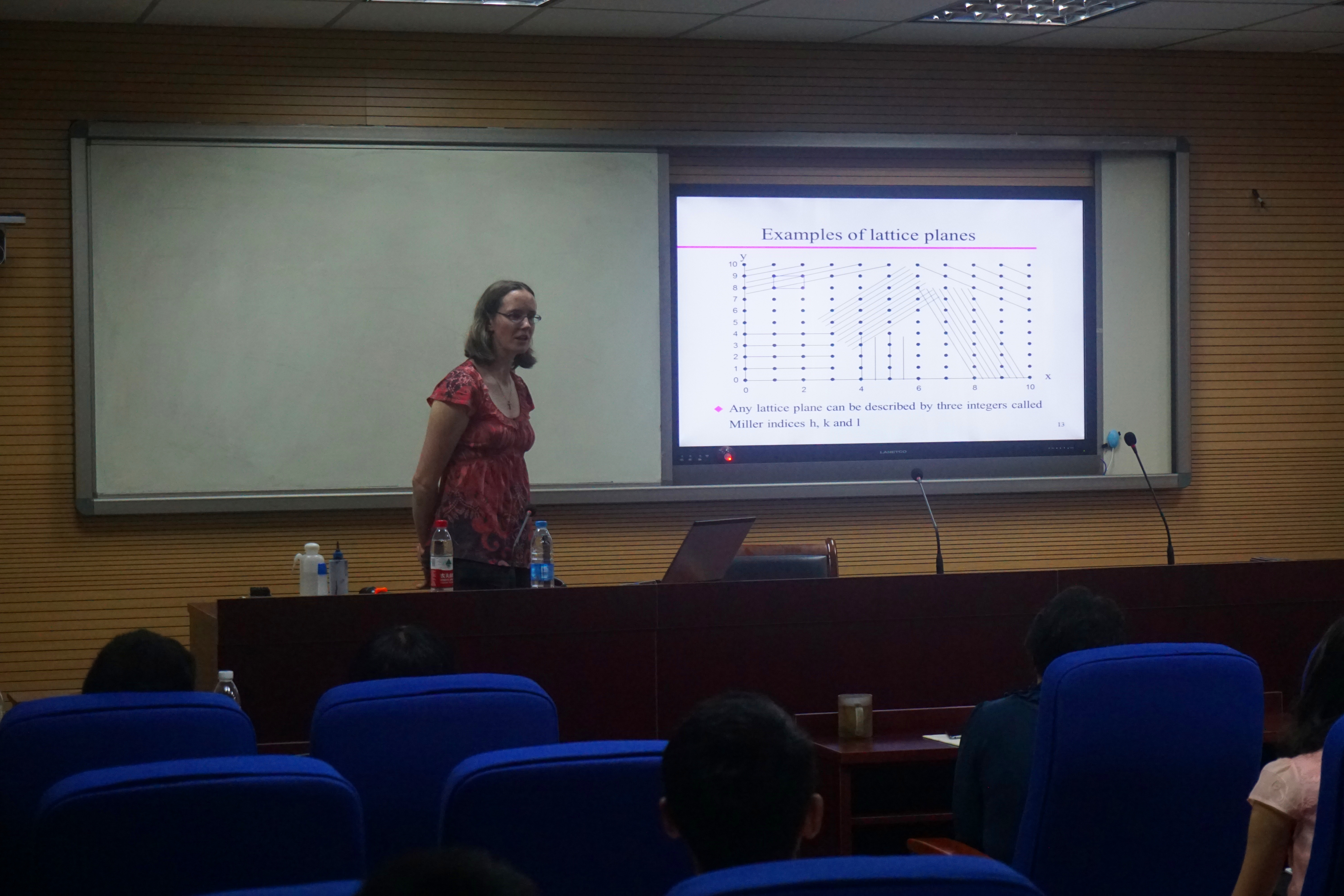 美国托莱多大学科学院院长Cora Lind-Kovacs教授来院讲学 我院刘红飞老师申请的2016年国家外专局“高端外国专家项目(文教类)”获得资助,近期邀请美国托莱多大学科学院院长Cora Lind-Kovacs教授来学院进行为期一个月的合作与交流。托莱多大学是一所美国知名公立综合大学,有144年的办学历史。Cora Lind-Kovacs教授是托莱多大学科学院副院长,硕士和博士阶段就读于世界著名工科院校佐治亚理工学院的化学专业,获得美国国家基金项目多项,在《J. Amer. Chem. Soc.》、《Chem. Mater.》等期刊上发表论文40余篇,在X射线衍射及其数据分析领域有着很深的造诣,曾任美国晶体协会的委员、副主席和主席,主要从事负热膨胀材料和硫化物等方面的研究。这次来我院除开展研究外,还将为研究生开设《晶体物性》全英文课程,讲授Topas和GSAS软件的使用和数据分析,具体课程安排详见学院网站。