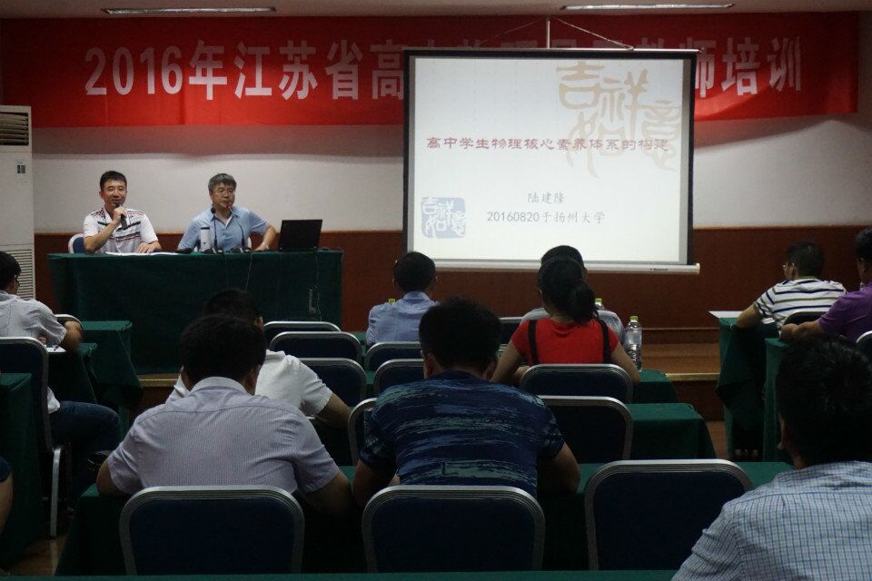 8月16日—20日,由江苏省教师教育培训中心主办、我院承办的全省高中物理骨干教师培训在扬州市石塔宾馆举行。来自南京、苏州、常州等全省十多个市的近60名高中物理骨干教师参加了培训。