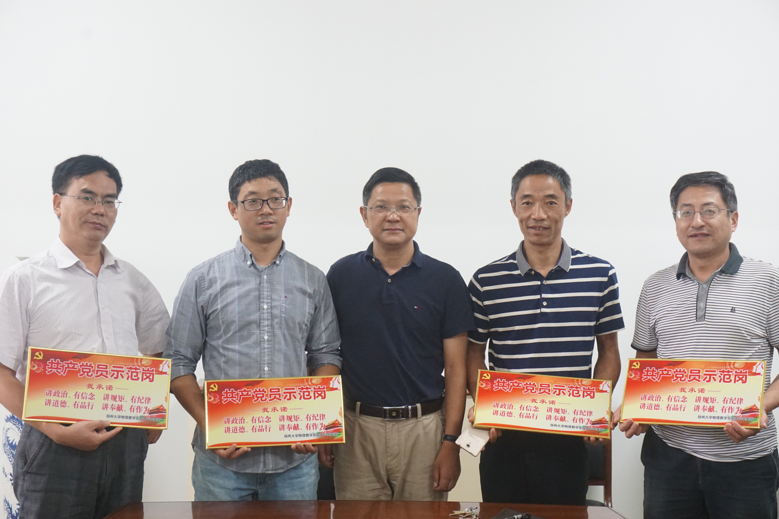 为深入学习贯彻习近平总书记系列重要讲话精神,推进“两学一做”学习教育扎实开展,9月21日下午,我院教工第四党支部举行了物理教学实验中心“共产党员示范岗”挂牌仪式。院党委王春雨书记向实验教学中心的党员授予“共产党员示范岗”标牌。王书记指出,“党员示范岗”的设立是党员“亮身份、树形象”的重要环节。实验室是直接服务学生和教师的场所,是实验中心党员“亮身份、比业绩,亮承诺、比作风”的前沿阵地,在实验教学中心工作的党员同志要在学生技能培养、科技创新和科学研究等方面给予积极指导,充分体现党员的先锋模范作用。教工第四党支部书记杨义军表示:“党员示范岗的挂牌只是党员‘亮身份、树形象’工作的第一步,接下来将结合实验室岗位职责,落实好承诺践诺制度。”