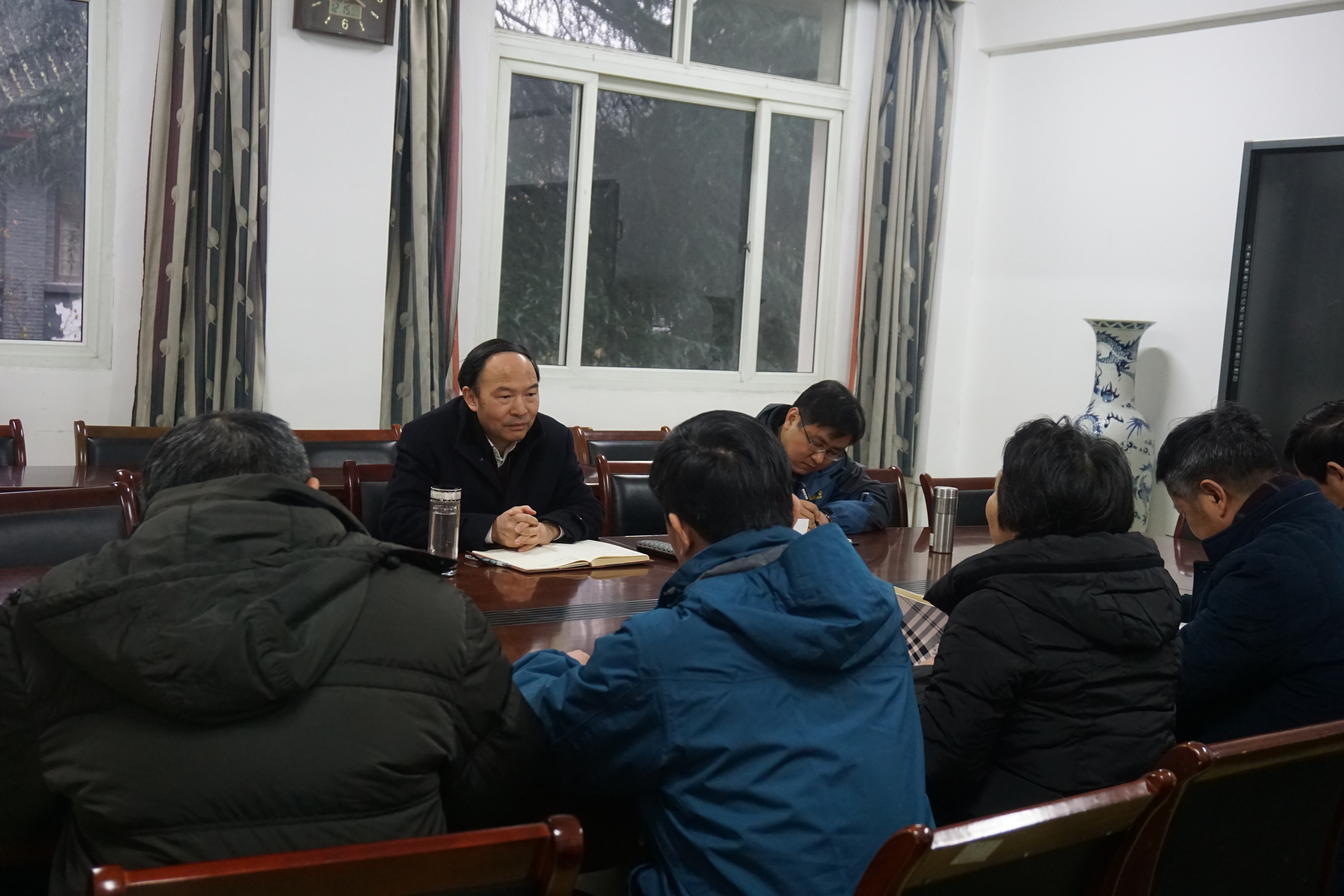 12月15日下午,焦新安校长来到我院调研指导工作。在听取了学院领导关于近期重点工作进展情况的汇报后,焦校长充分肯定了学院一年来所取得的成绩,认为目前学院的总体发展质态良好。焦校长指出,物理学院近年来在人才培养、人才引进、科学研究等方面都有了较大的提升。在今后的工作中,要在规范管理的基础上进一步强调内涵建设,不断推进重点工作有质的突破;要在引进培育优秀人才的基础上进一步加强团队建设,不断产出创新成果重大成果;要在完善培养方案的基础上进一步推动创新人才培养,不断提升人才培养质量;要在充分了解社会需求的基础上进一步加强产学研合作,不断提高社会服务水平。焦校长强调,学院要以学位点申报为契机,加强顶层设计,争取使学院事业再上新台阶,为学校高水平研究型大学建设作出贡献。