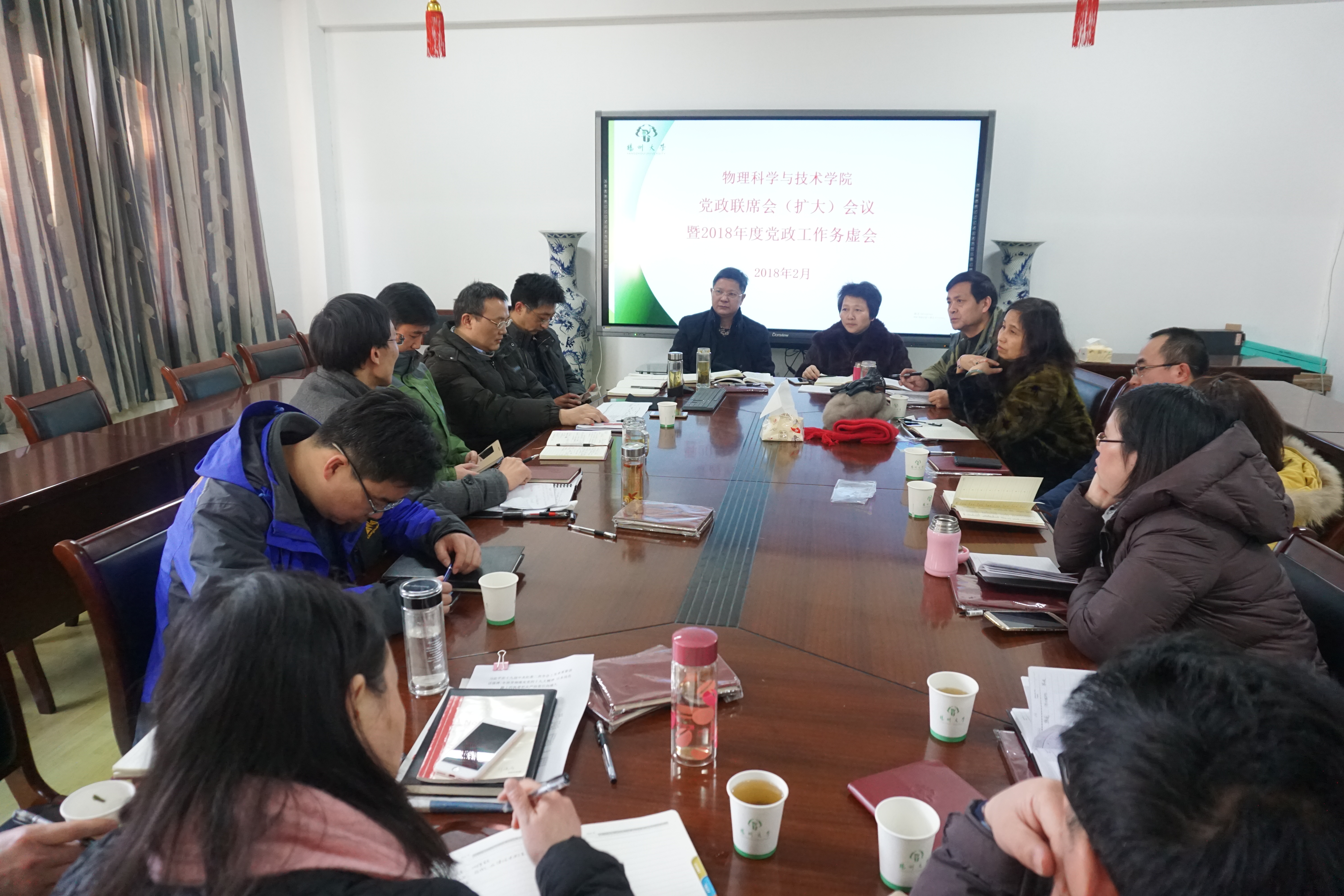2月5日,我院于学院二楼会议室召开党政联席会(扩大)会议暨2018年度党政工作务虚会,全体院领导、系(部)主任、党支部书记出席会议。