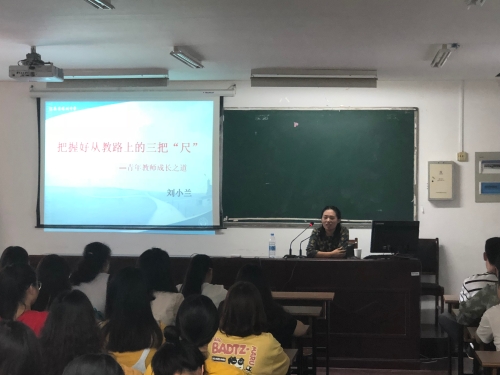 9月7日,教师节即将来临之际,也是物理科学与技术学院2017级物理教育专业的学生们奔赴实习基地进行教育实习的前夕。我院教学院长王伟邀请江苏省邗江中学集团物理一级教师、区中学物理学科带头人、中学物理教学名师张峰老师,以及扬州中学青年骨干教师、物理创新教学能手、心理咨询师、优秀班主任刘小兰老师,分别做了“中学物理课堂教学设计的几点注意”和“把握好从教路上的‘三把尺’—青年教师成长之道”的师范生实习指导报告。她们从课堂到课外,从理论到实验,从教学设计、教案书写到实验创作等,深入浅出,生动演示,深深吸引了“准教师”们,并受到他们的热情追捧。两位老师的报告,给师范生们上了一堂生动的教学技能示范课。