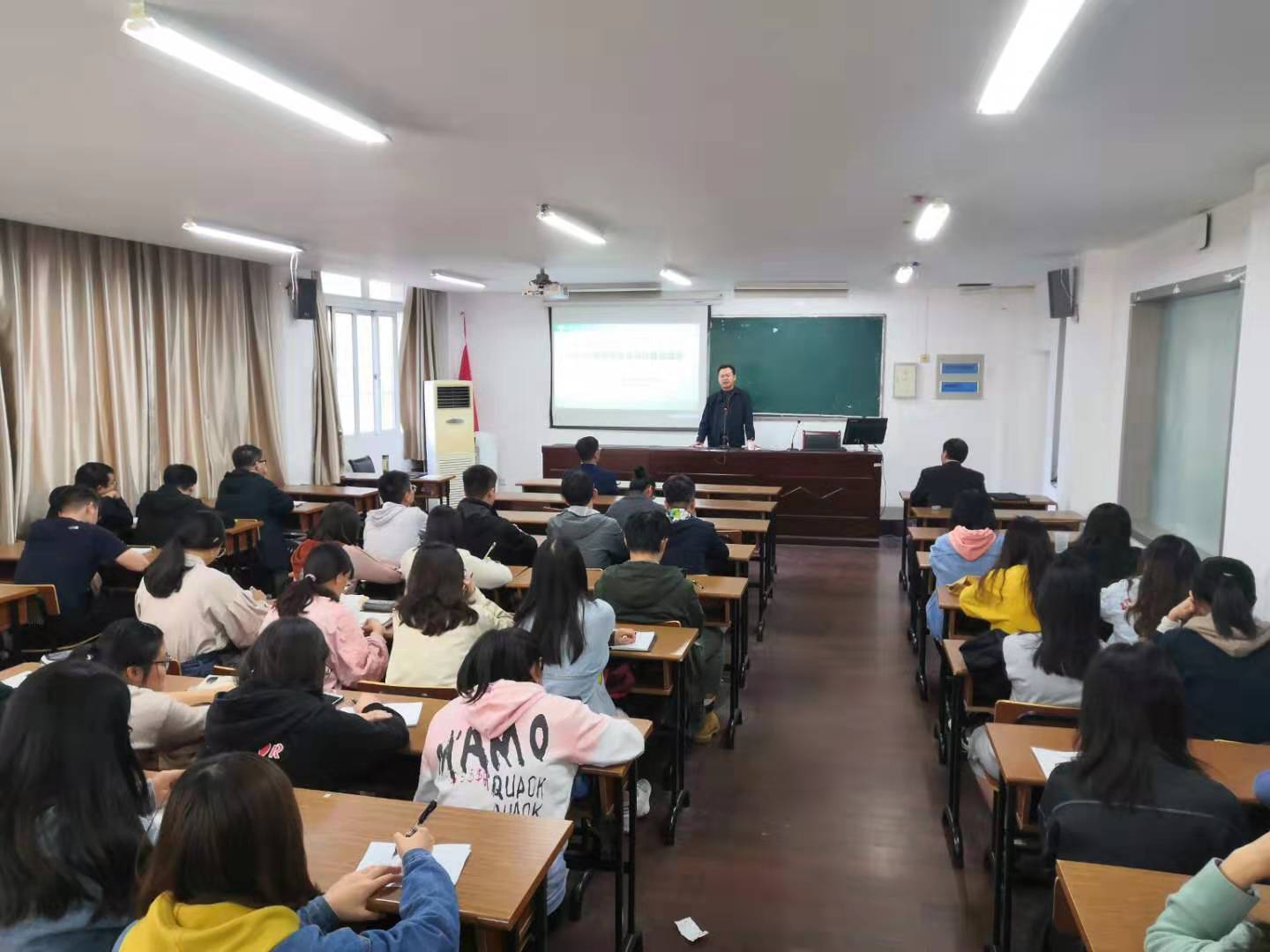 2019年11月3日下午,我院物理师范16级学生在物理楼219召开了师范专业实习交流汇报总结会。总结会由副院长王伟主持,党委书记王春雨,副书记高红明出席。会议邀请了扬州树人中学副校长崔伟老师做了报告。崔伟老师以如何当好一名合格的中学物理教师为抓手,用他多年的教学和行政经验,为全体师范实习生做了详细的分析和点评。报告受到我院师生的一致好评。在总结会上,全体57名参加实习的学生分成小组,分别介绍了各自的实习体会,大家各抒己见,畅所欲言,交流活动取得圆满成功。