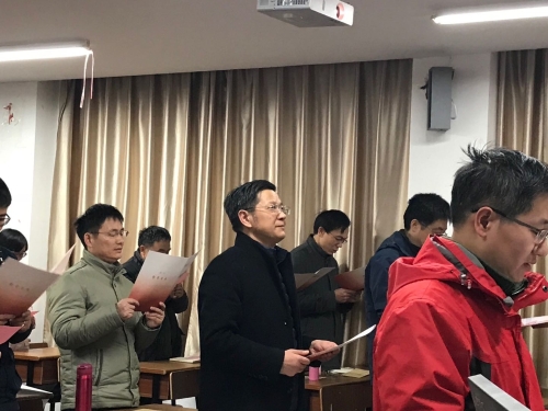 警示教育课后,学院举行师德师风宣誓仪式。学院教职员工在涂育松院长的带领下,全体起立,庄严宣誓:坚定政治方向;自觉爱国守法;传播优秀文化;潜心教书育人;关心爱护学生;坚持言行雅正;遵守学术规范;秉持公平诚信;坚守廉洁自律;积极奉献社会。