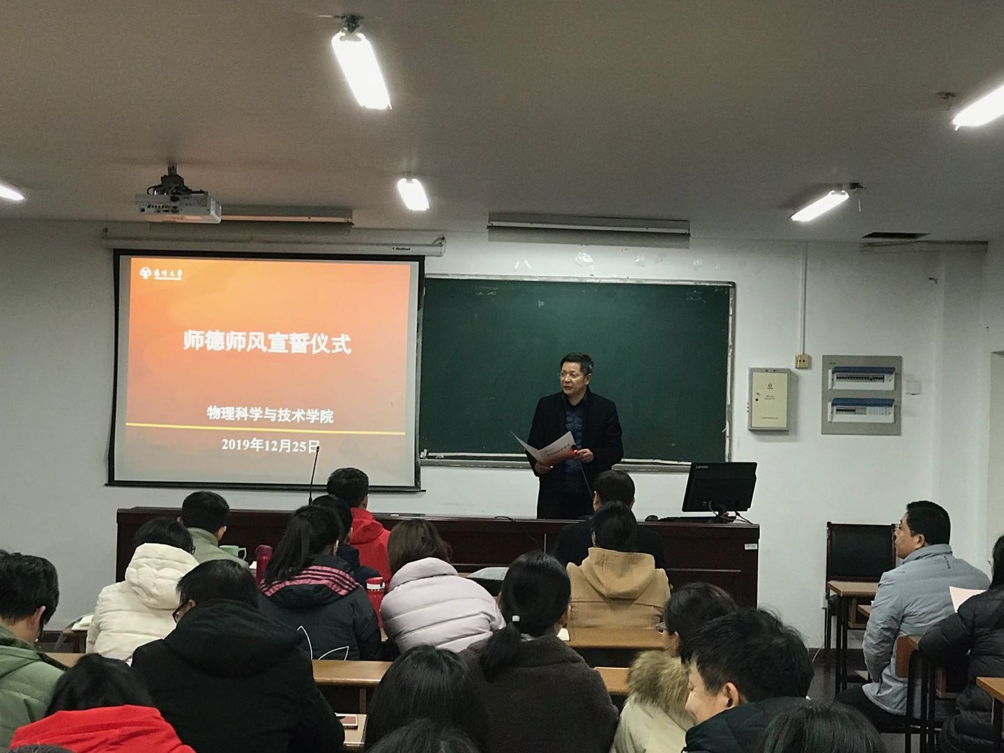 12月25日下午,学院开展师德师风警示教育、举行师德师风宣誓仪式。学院党委书记王春雨主持活动,全体教职员工参加。