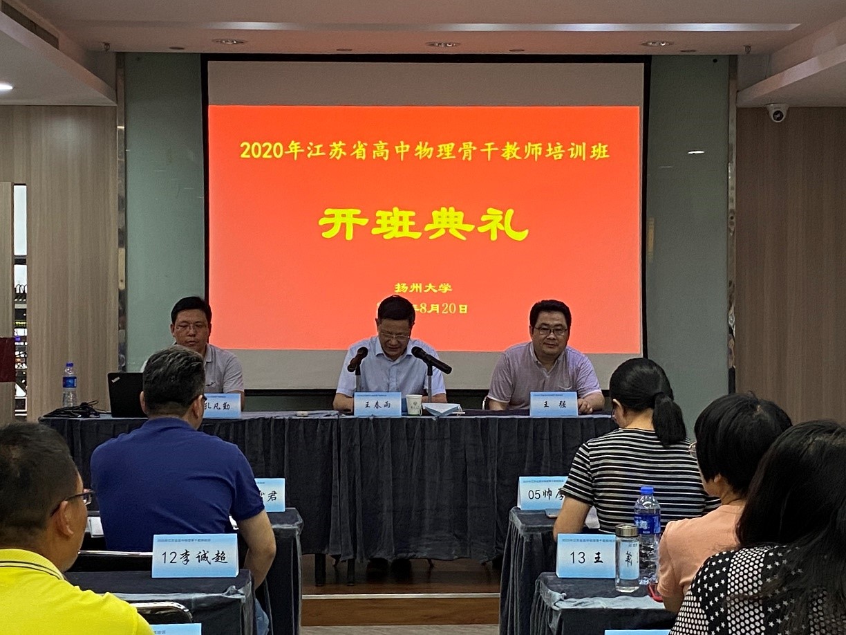 受江苏省教师培训中心委托,由我院承办2020年江苏省高中物理骨干教师训项目于2020年8月20日顺利开班。扬州大学物理科学与技术学院王春雨书记、扬州大学物理科学与技术学院王强教授出席开班典礼,扬州大学物理科学与技术学院孔凡勤主任主持开班典礼。