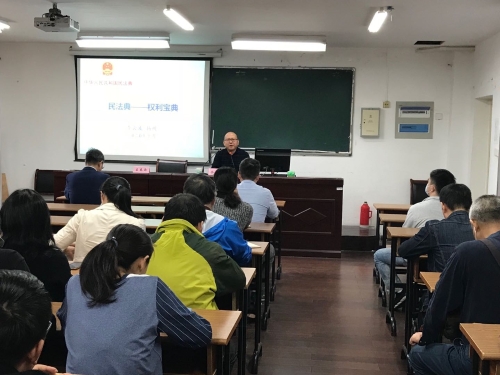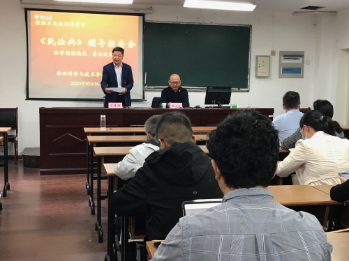 10月14日下午,学院党委在报告厅举行教职工集体理论学习会。会议邀请校《民法典》专题宣讲团指导教师、法学院李云波老师作题为《民法典——权利宝典》的专题辅导报告。