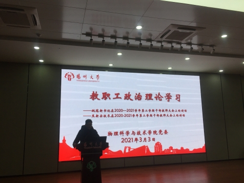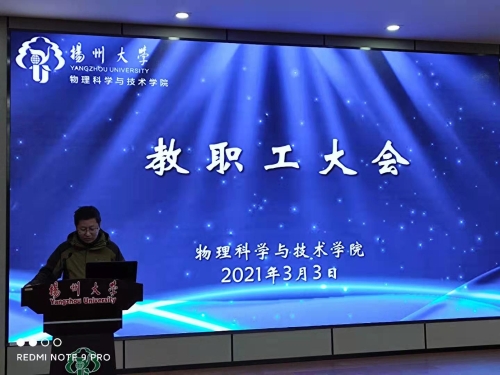 3月3日下午,学院在瘦西湖校区8号楼S405召开新学期教职工大会。王春雨书记主持会议,全体教职工参加会议。