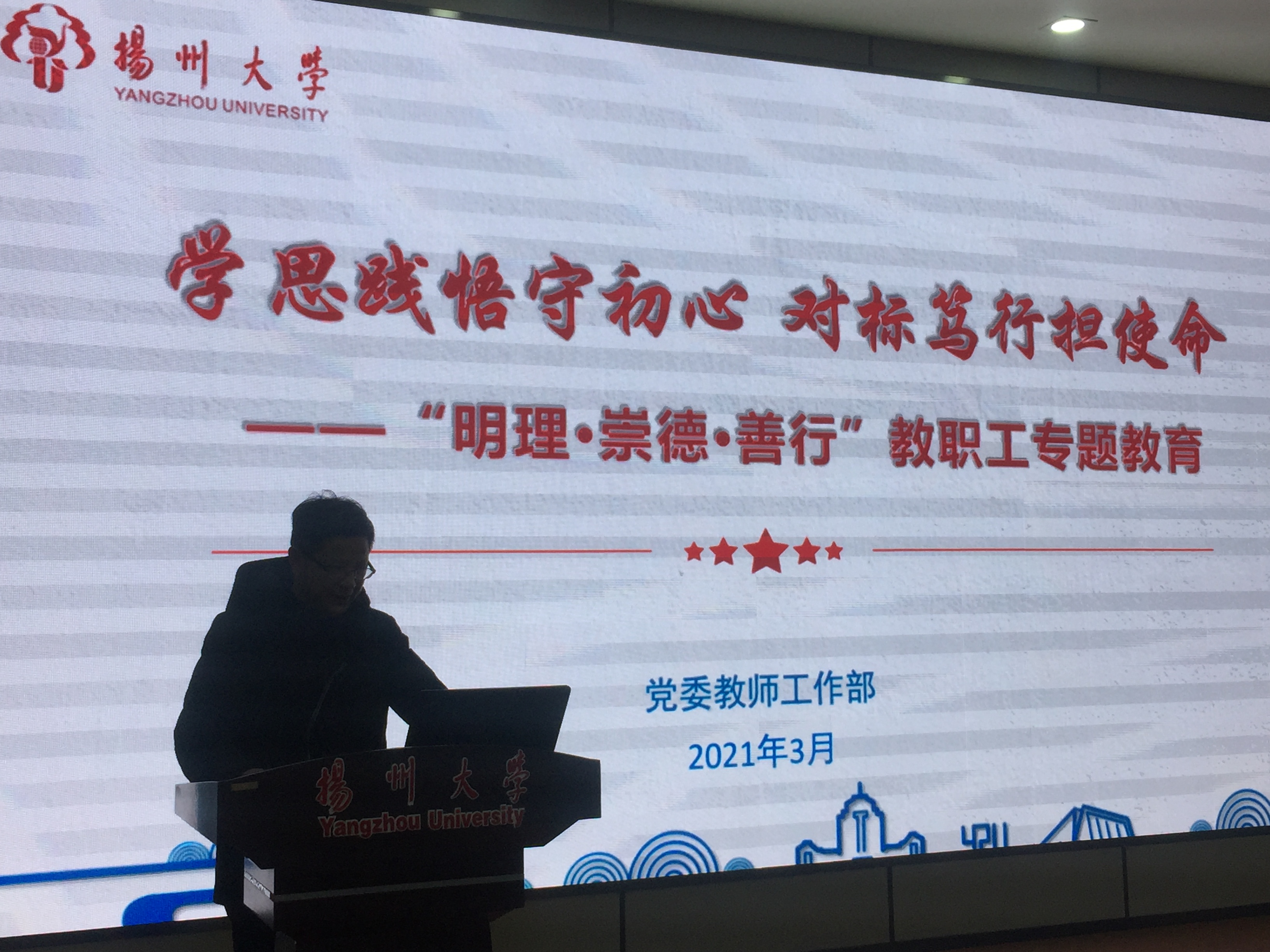 会议传达学习了姚冠新书记、焦新安校长在2020—2021学年第二学期干部教师大会上的讲话精神,还组织开展了教职工“明理·崇德·善行”教职工“开学第一课”专题教育。