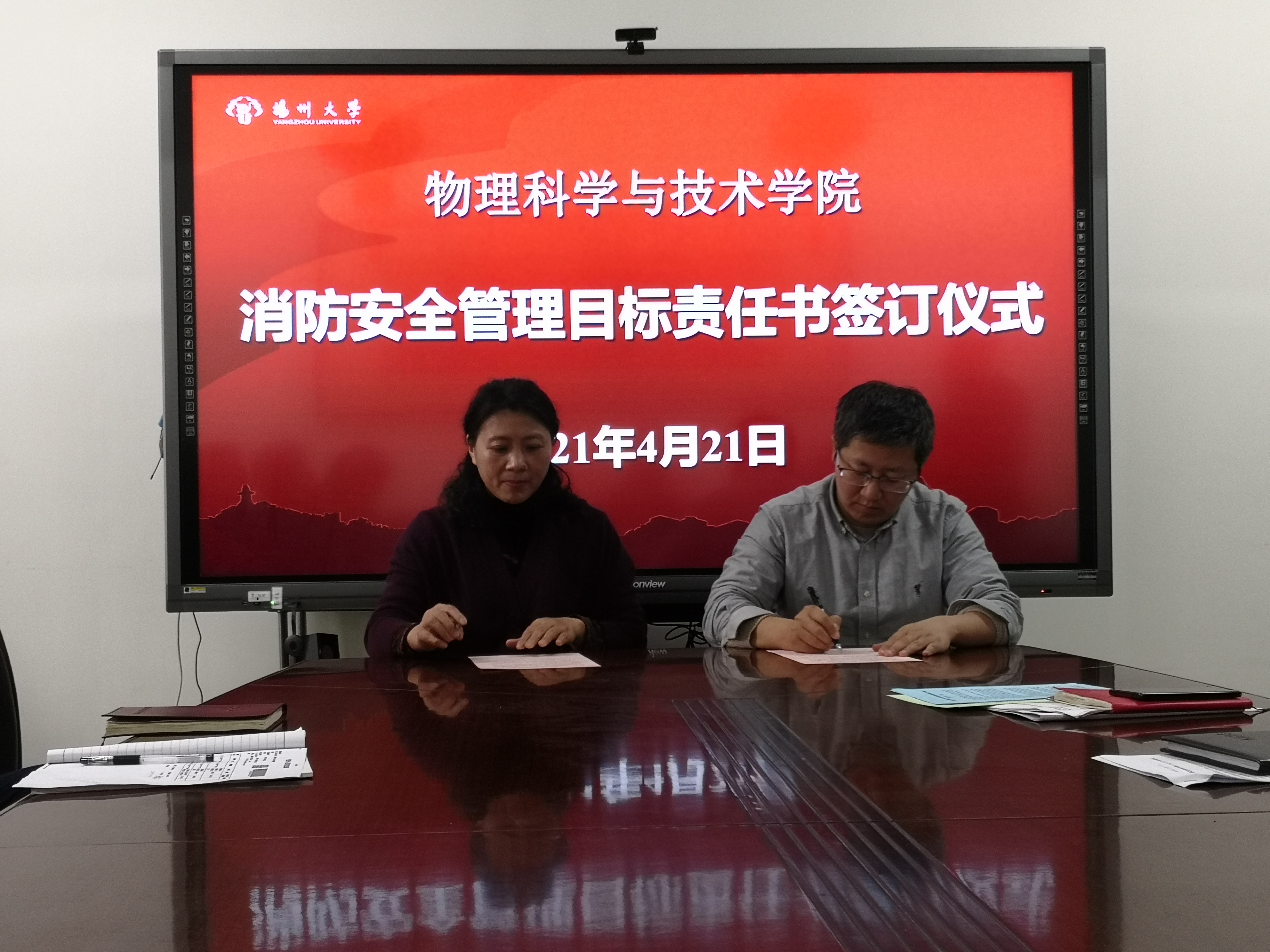 会上,学院领导分别与责任对象签订了校园安全综合治理、消防安全、安全生产责任书。