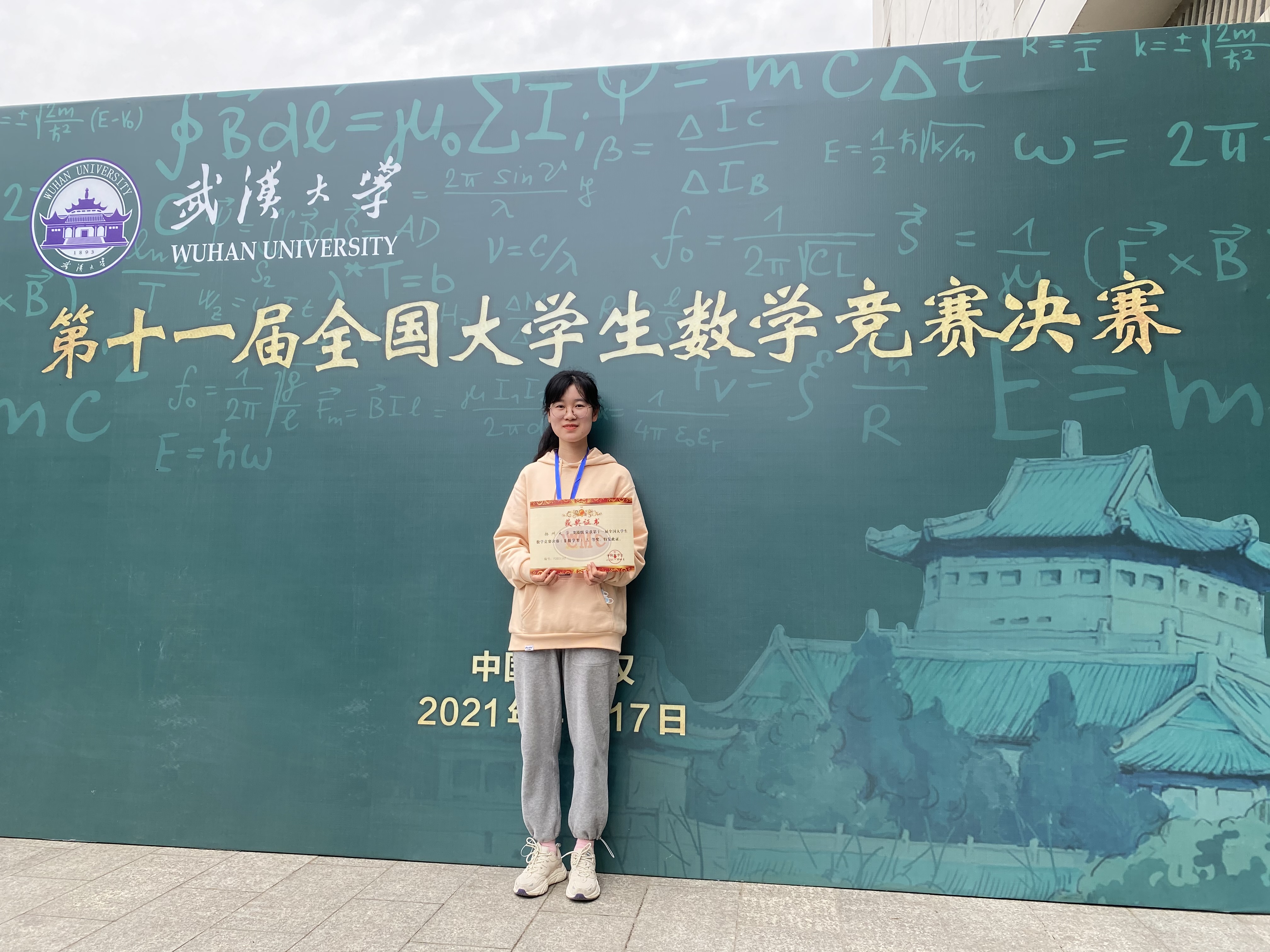 喜报!我院刘亚棋同学获得第十一届全国大学生数学竞赛决赛(非数学类)三等奖2021年4月17日,第十一届全国大学生数学竞赛决赛在武汉大学举行,我院刘亚棋同学,在此次比赛中取得佳绩,获得第十一届全国大学生数学竞赛决赛(非数学类)三等奖。