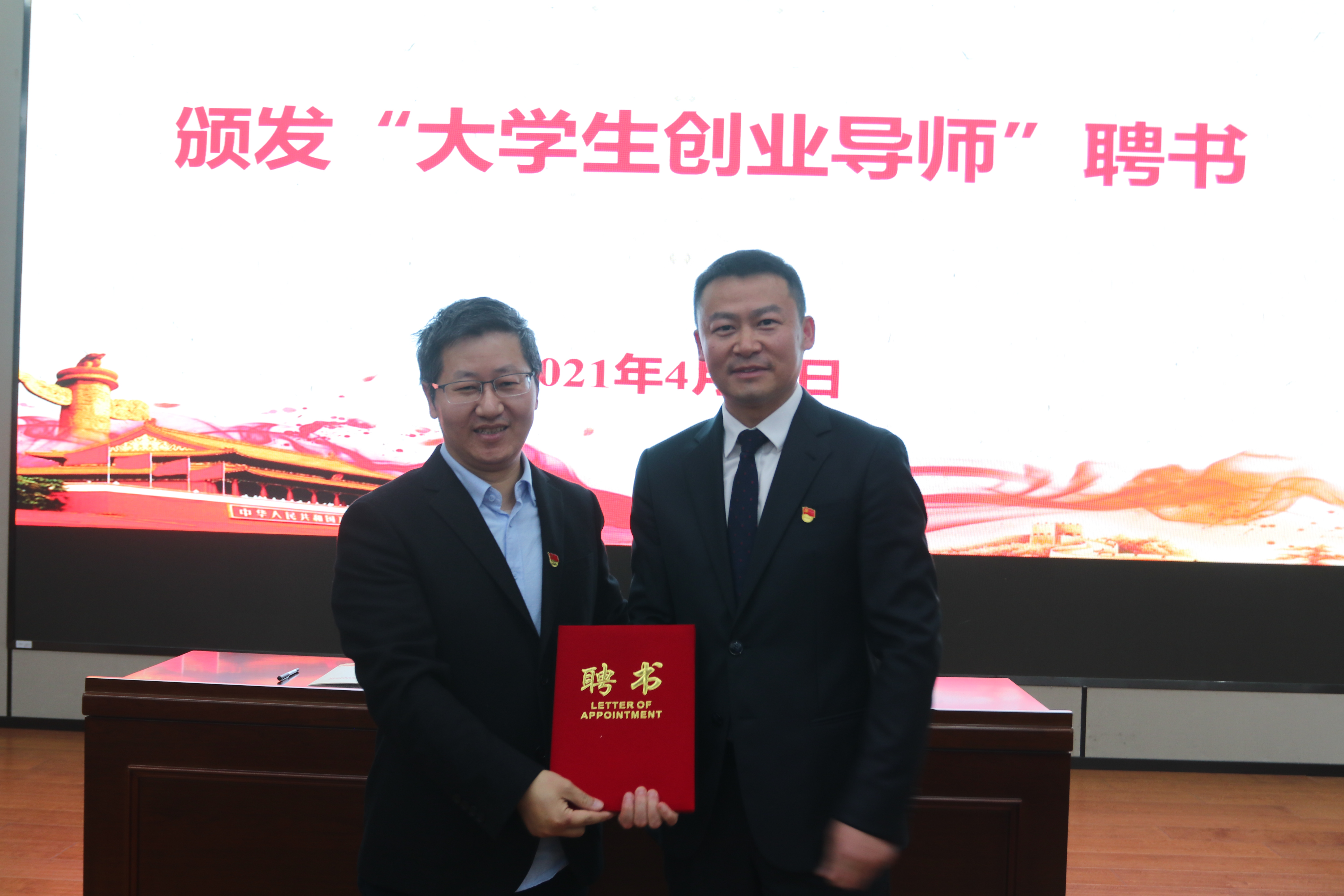 学院党委书记王春雨和爱涛集团党委书记岳峻分别代表结对共建双方签署共建协议;院长涂育松为爱涛集团党委书记、董事长岳峻颁发“大学生创业导师”聘书。