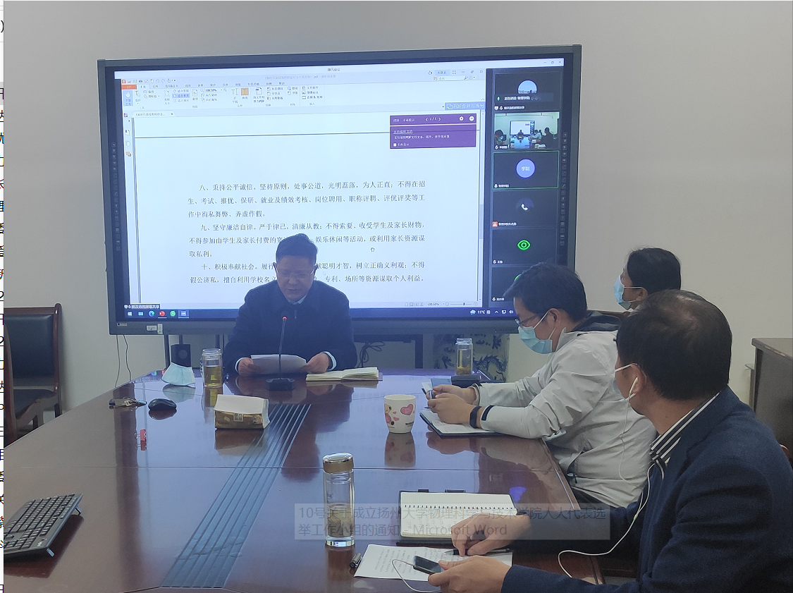 为进一步规范教师履职履责行为,落实立德树人根本任务,加强学院师德师风建设工作,10月20日下午,物理学院在学院会议室、腾讯会议室线上线下召开“师德师风建设专题”教职工集体学习会,学习会由学院涂育松院长主持,全体教职工参加会议。