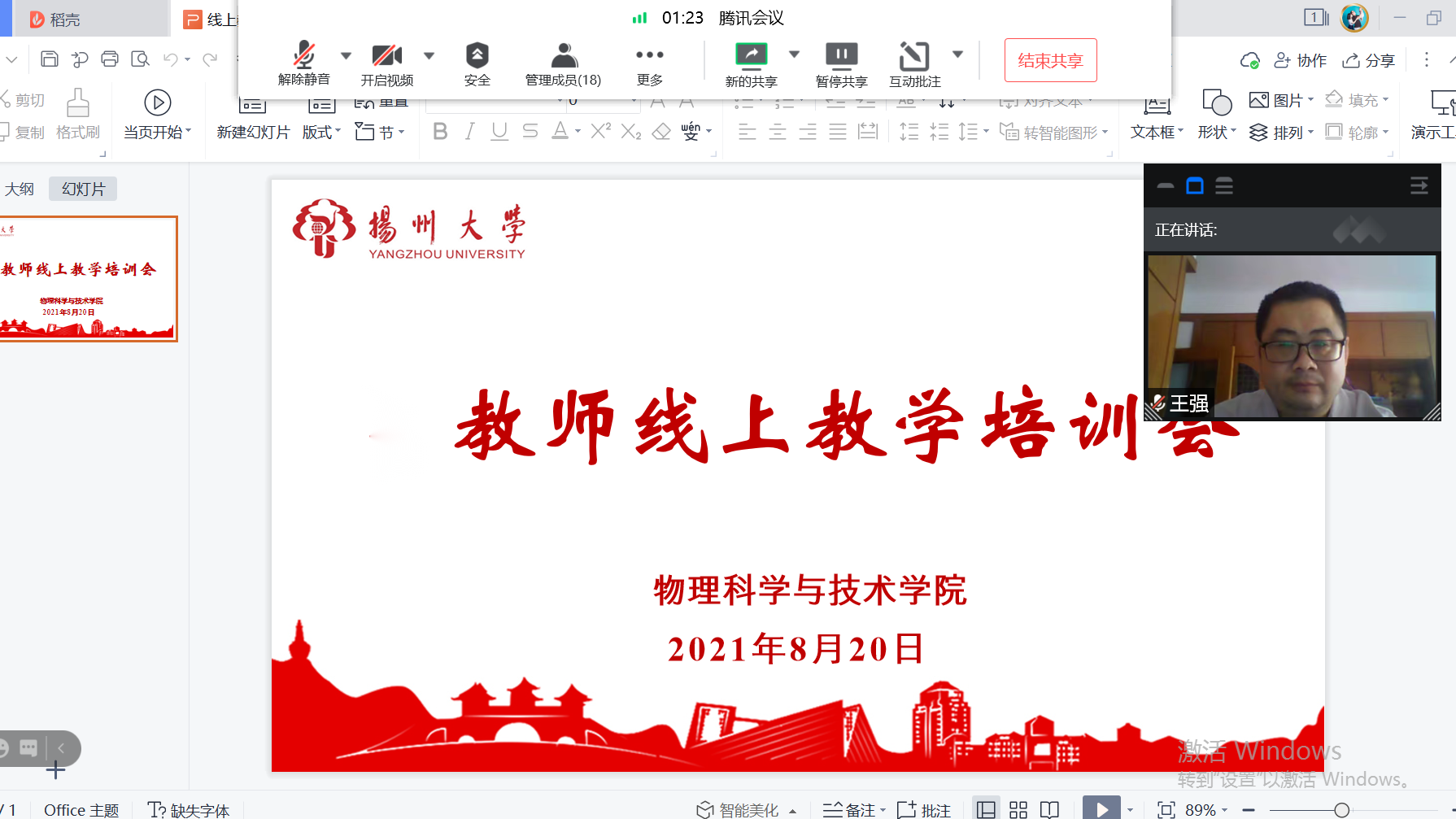 为进一步提升教师线上教学效果,8月20日学院面向新、老教师开展了如何做好线上教学” 主题教学沙龙活动,结合前期线上教学经验和常用的腾讯会议、QQ直播、eol和MOOC等线上教学平台,学院邀请了王强、孙锦如两位老师做了专题讲座,会议中教师们认真听讲,积极探讨。