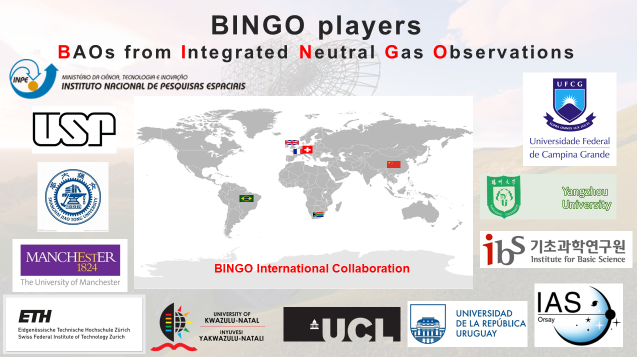 该项目由巴西圣保罗大学,英国曼彻斯特大学、伦敦大学学院、瑞士联邦理工学院以及中国团队所在的各单位参与。扬州大学组织中国科学技术大学、上海交通大学、上海天文台、中国电科网络通信研究所等组成中国团队,加入BINGO重大国际合作计划。扬州大学专家担任了由五名国际专家组成的BINGO首席科学家组与执行委员会成员。引力与宇宙学中心安德烈、拉丽莎、桑语、张雪分别承担了该国际合作项目理论模版、前景扣除以及相关天体物理课题研究。中心执行主任吴健聘教授承担了大量设备采购、工程沟通等繁琐行政工作。明年在巴西帕拉伊巴州将建成一座专门用于观测宇宙中性氢气体的大型单口径射电望远镜,探测宇宙深空发射来的重要信号,从而揭示宇宙结构和暗能量的奥秘。