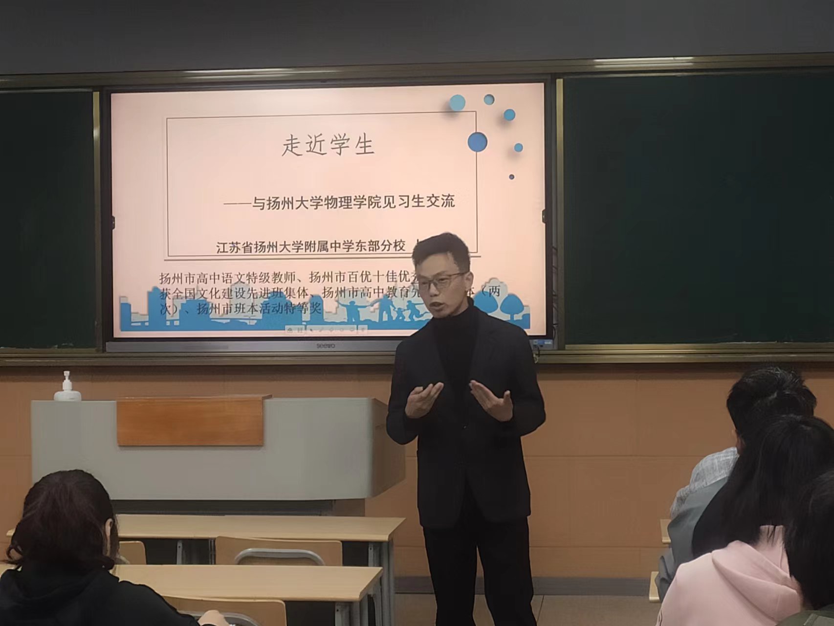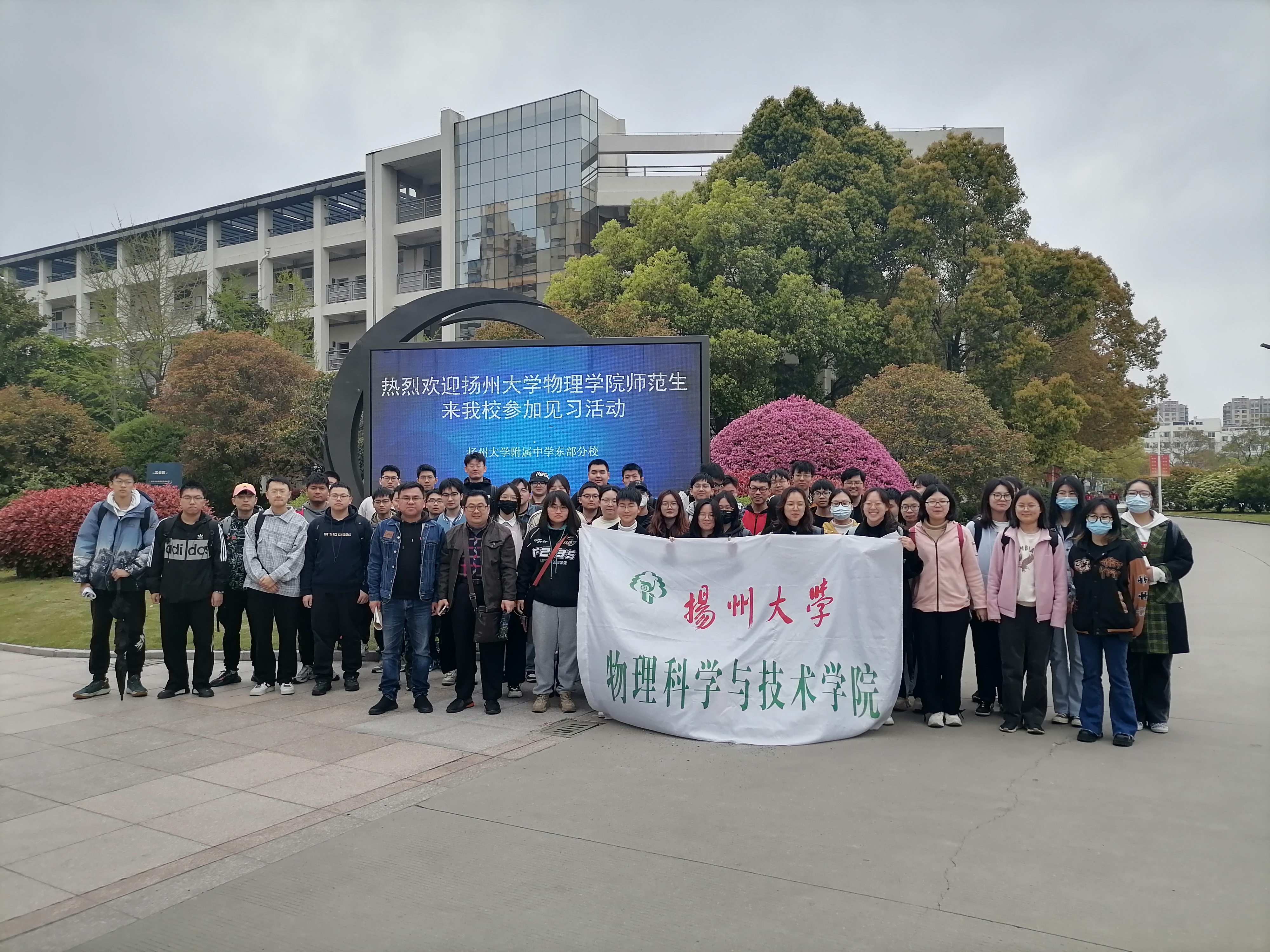 4月3日,我院组织了物理学(师范)专业学生到扬州大学附属中学东部分校进行教育见习,物理系部副主任王强老师、陆文峰老师和辅导员荐小纯老师带队,20级108名师范参加见习活动。