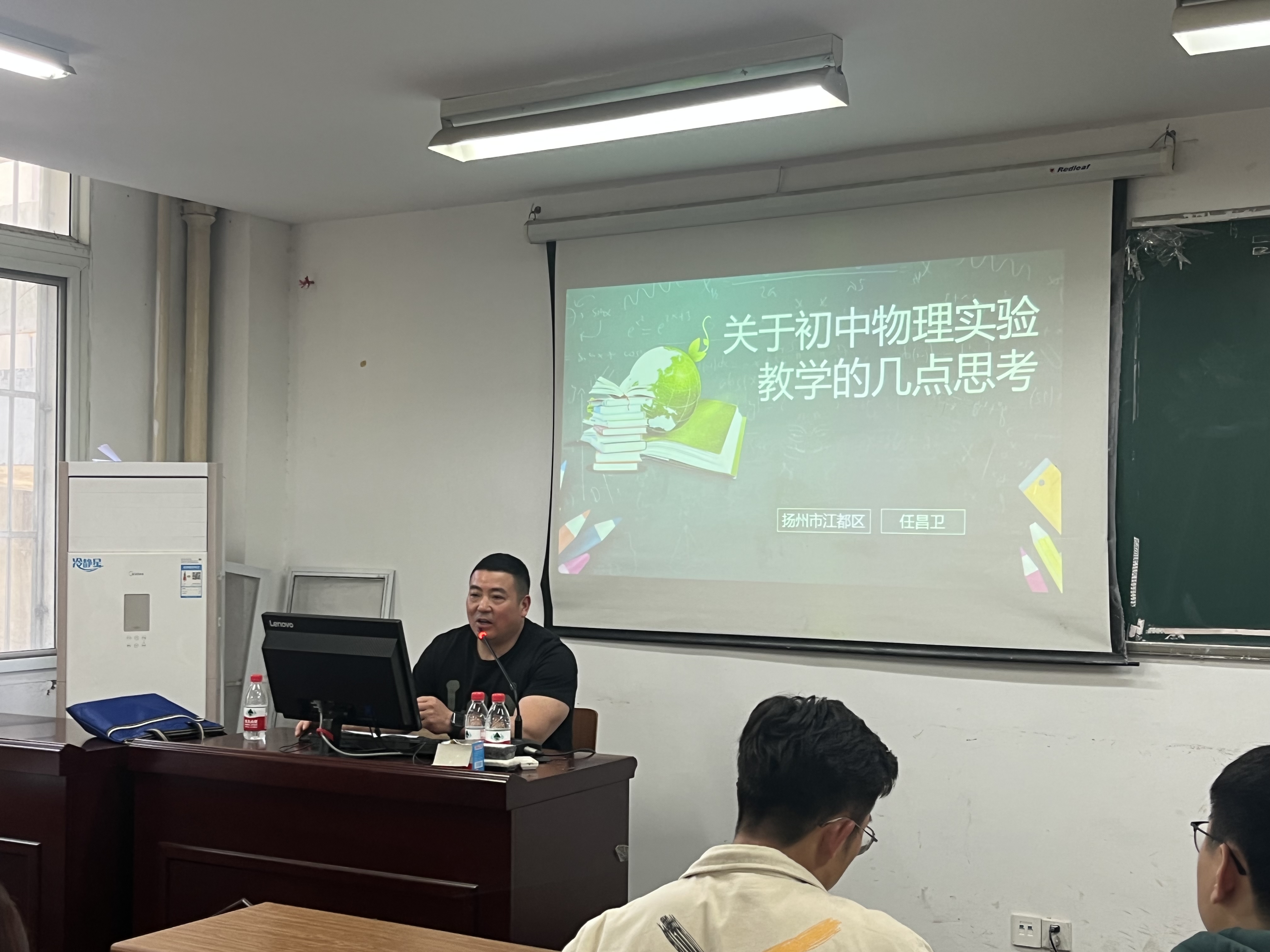 任昌卫老师分享了提升物理实验素养的方法,首先由初中学生本身特质引入,强调了物理实验对引发学生兴趣、启发学生灵感的奠基作用,也为参会同学介绍了物理实验在新课程中的地位和作用。接着任老师以测量筒实验、单摆实验等为例简述了物理实验教学的分类,任老师重点介绍了物理实验教学各形势的综合化,强调了课内外结合的重要性。最后,以案例“流体流速与压强关系”引出物理实验教学设计优化对调动学生课堂情绪的积极效果,强调了实验可见度、实验器材选择等对实验演示的重要性,同时,任老师提出,教学过程应沿学生思维进行教授,利用身边物品进行实验,保留学生自身思考的部分,加深学生对教学内容的了解。