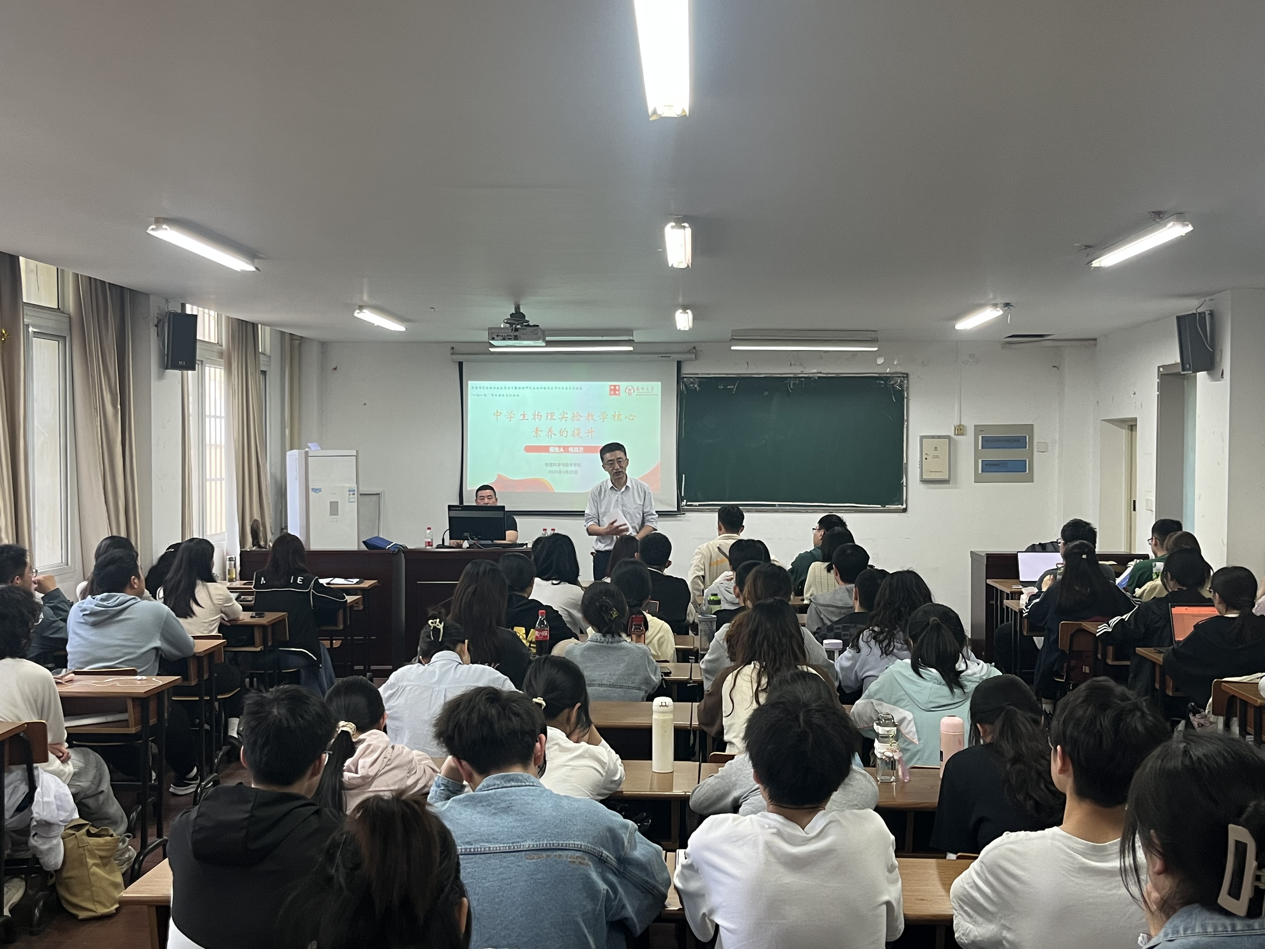 通过此次活动,参会学生学习到教学活动应坚持真(原理科学)、新(设计新奇)、美(设计主次分明)原则,要开展综合型活动,引导学生参与自制学具、教具等发明创造活动,始终对教学保持高度热情,不断创新实验设计,致力于培养学生自身的思考能力。本次讲座对参会学生的专业学习起到了重要的指引作用。
