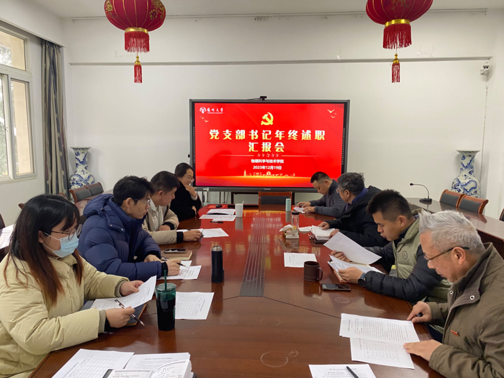 12月19日,学院党委在物理楼213会议室召开2023年度党支部书记述职评议会,会议由院党委书记王春雨主持,党委副书记毕瑜林及全体党支部书记参加会议。
