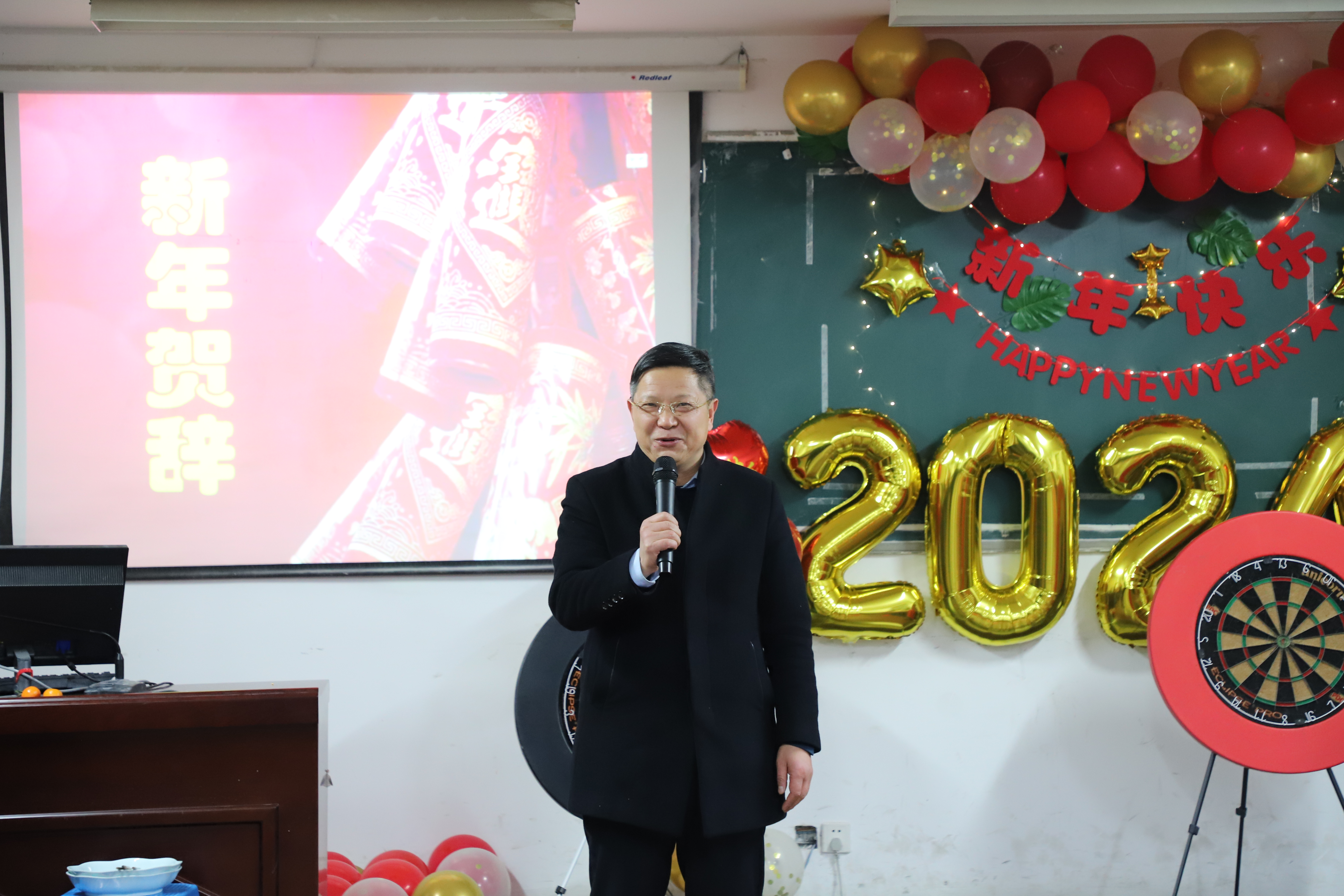 院党委书记王春雨发表新年致辞。他向所有关心、支持学院建设和发展的老师表示了诚挚的感谢,并送上了美好的新年祝福。他提到,过去一年,学院全体师生牢记习近平总书记的重要勉励精神,认真贯彻落实学校党委的工作部署和要求,始终赓续红色血脉、传承红色基因,奋力走好党建引领的新征程;始终聚焦立德树人根本任务,奋力开创精育英才的新局面。他表示,新的一年,学院领导班子将接续奋斗,不断满足全院师生对美好生活的向往,继续为学校高质量发展和学生高素质培养贡献力量。