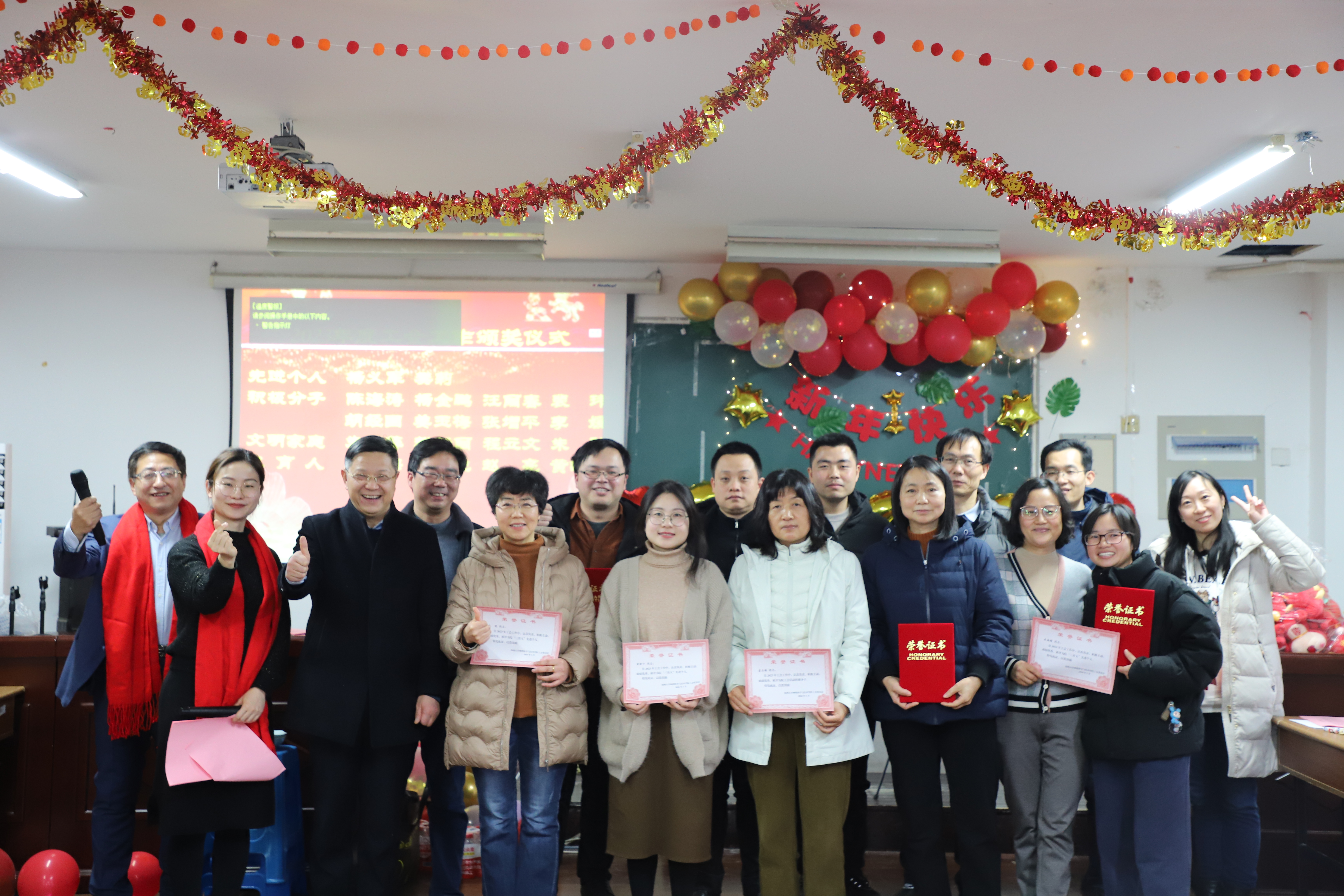此外,本次新年联欢会上,学院对工会先进工作者、工会活动积极分子、文明家庭、“三育人”先进个人以及院工会活动积极分子进行了颁奖。