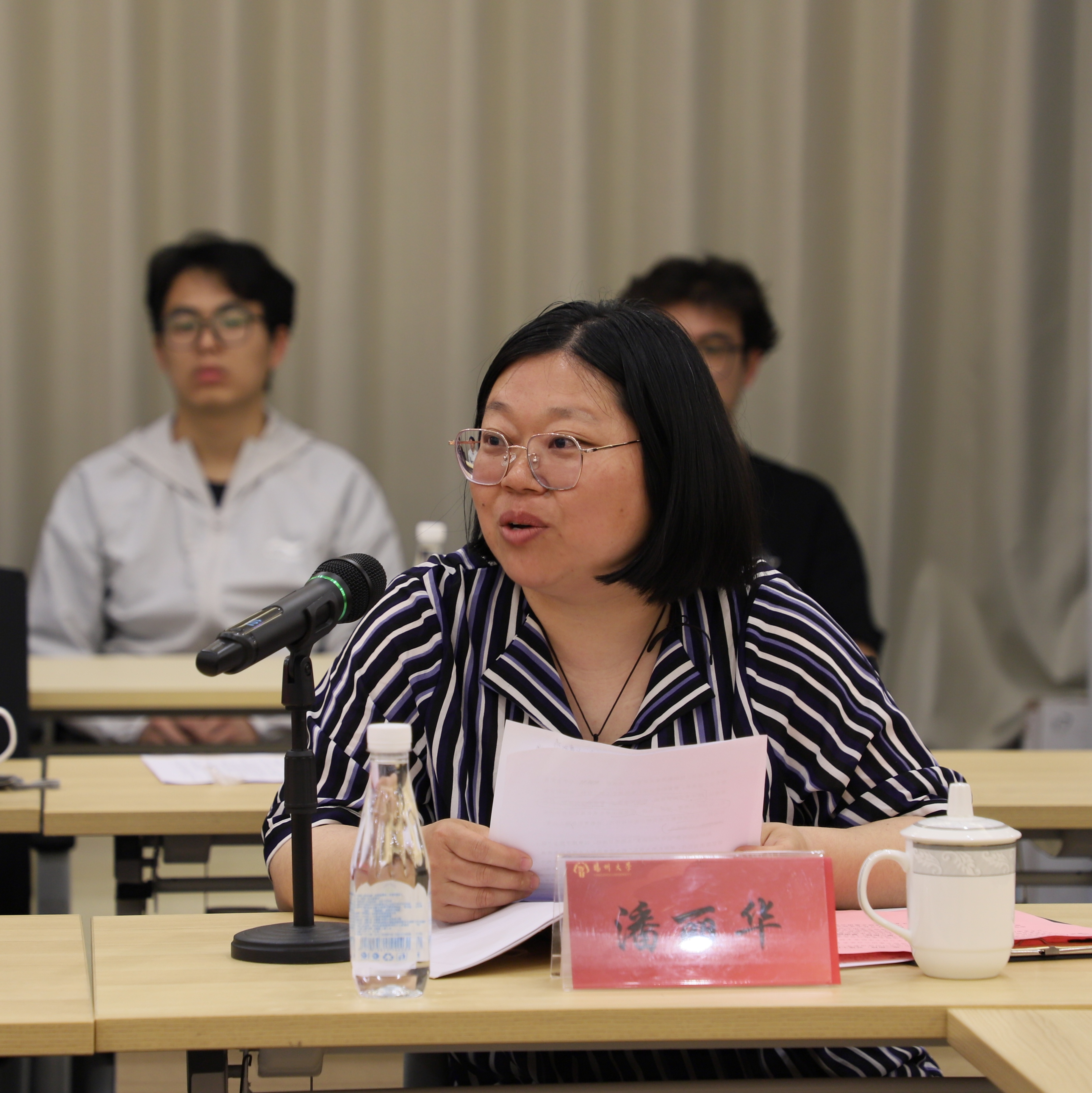 紧接着,学院教职工第二党支部副书记潘丽华与研究生第三党支部书记郭汉涛分别就本支部的党建工作进行了汇报与交流。潘丽华老师详细介绍了教职工党支部在推动学科建设、服务师生发展等方面的积极作用,并分享了支部在党建工作中的创新实践与显著成果;郭汉涛老师则重点阐述了学生党支部在加强学生思想政治教育、促进学生全面发展等方面的工作,以及支部在党员发展、党员教育等方面的宝贵经验与实践。
