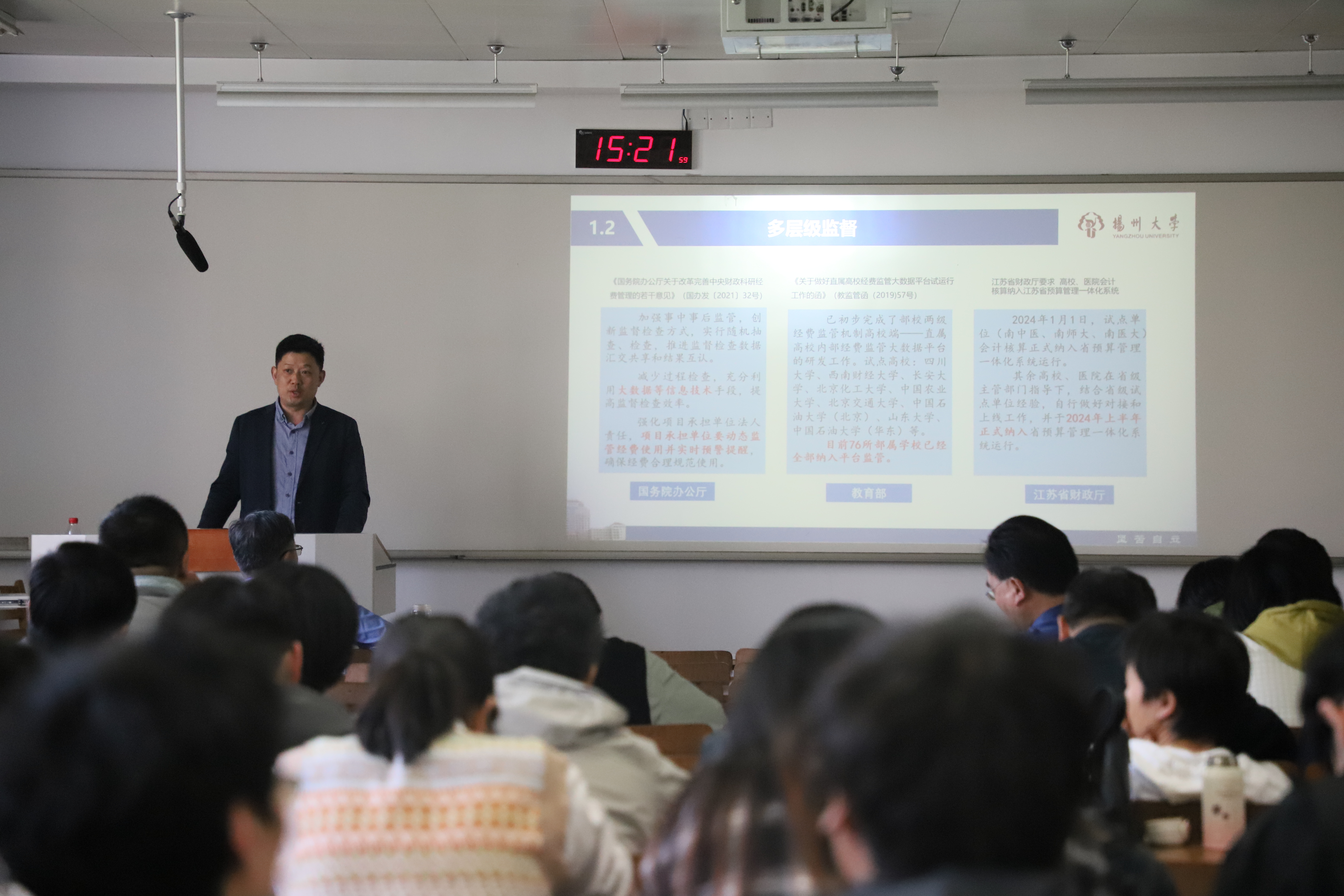 近日,我院在瘦西湖校区8号楼开展财务报销和科技管理专题学习培训。财务处副处长陈东、科技处副处长赵海涛应邀出席,全体教职工参会,院党委书记王春雨主持会议并讲话。