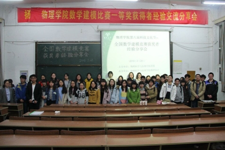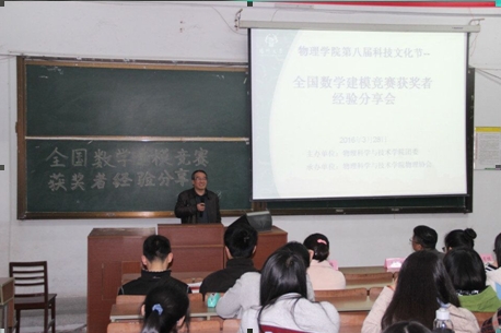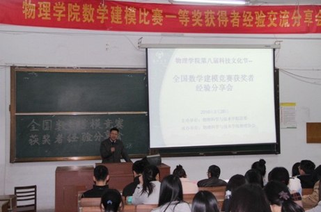 3月28日下午,我院在物理楼西附二楼举办了“全国数学建模竞赛获奖者经验分享会”。本次分享会由我院团委主办,我院物理协会承办。出席本次会议的有我院党委副书记王春雨、数学学院数学建模负责人赵俊教授、我院辅导员张月明老师以及我院荣获数学建模国家一、二等奖的优秀学生代表。
