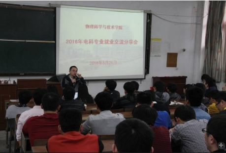 分享就业经验 助力精彩人生――我院成功举办电科专业毕业生经验交流会 5月21日下午两点半,我院在物理楼西附二楼举办电科专业经验交流会,学院电科专业主任孙妍老师,陈磊老师以及辅导员张月明老师出席此次会议。本次经验分享会邀请了电科12级的优秀学生代表,为本专业的学弟学妹们分享自己的实习心得和就业感悟。