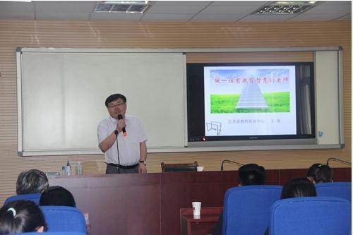 汲取教育智慧 开拓锐意人生----我院成功举办物理学师范专业讲座 5月26日下午4点在物理楼310,我院有幸邀请到特级教师王高老师为学院12级与13级的物理学师范专业的同学们做了一场主题为“做一位有教育智慧的老师”的精彩的报告。副院长谢然老师与学科教学专业的研究生们也出席了此次会议。