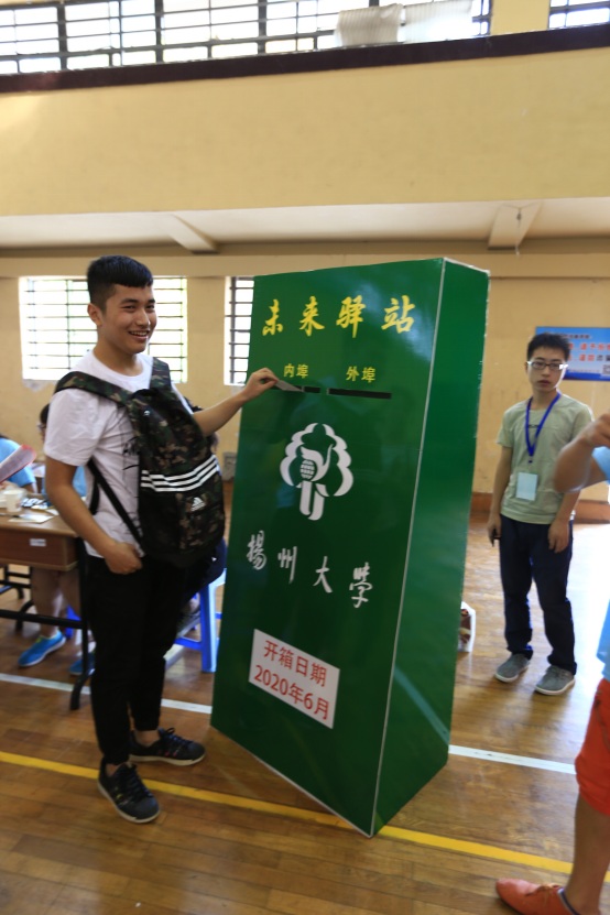“四年物理梦,萌新们想对未来的自己说些什么呢?”志愿者们热情地向新生们介绍物院迎新特色——未来驿站,一个崭新的巨大邮箱。邮箱是由物理学院的同学们为新生们精心制作,清新鲜丽的绿色代表着梦想与希望,未来驿站存放新同学们承载梦想和希冀的明信片,为新生打造追梦平台。物理学院用这样的方式告诉新的物院成员们:当一匹自由洒脱的千里马,追未来,勿忘初心,活出精彩。未来终将绽放耀眼的光彩。