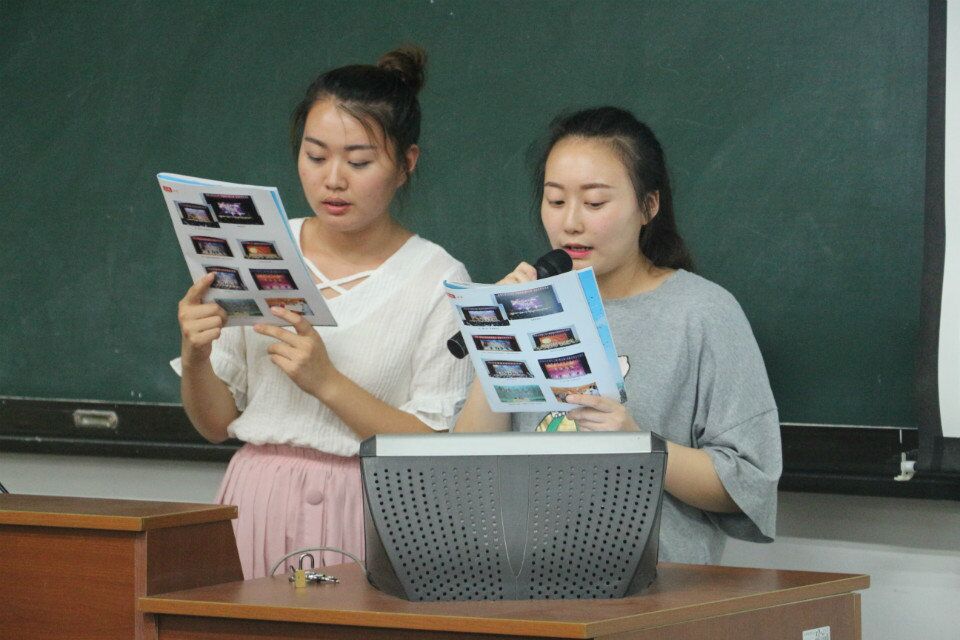 为此,学院特意邀请了音乐学院的两位学姐现场教学扬大校歌。每一个音调,每一个节拍,每一句歌词,她们都耐心教导,同学们也认真学习。歌曲练熟之后,各个班的同学们积极大胆地站起来领唱,在场每一位同学都以洪亮的歌声回馈给两位学姐,气氛好不热闹。