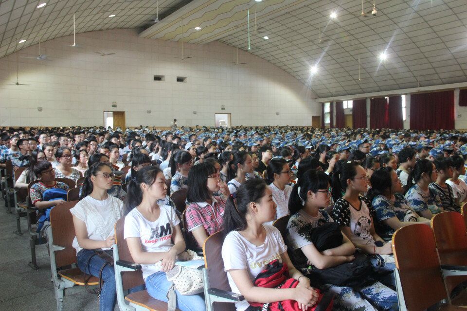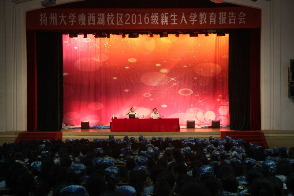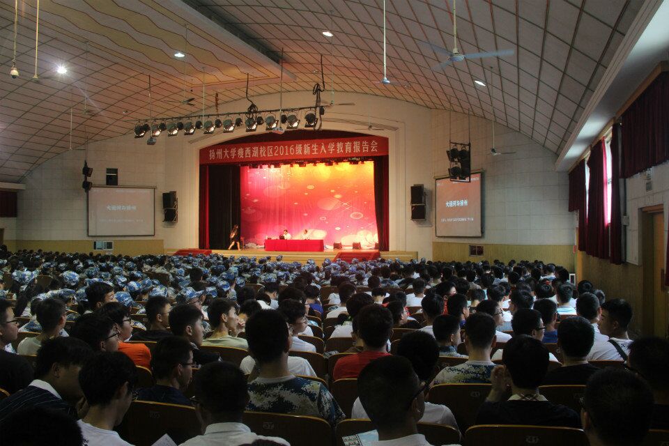 9月6日下午,物理学院2016级新生来到文汇路校区大礼堂参加扬州大学瘦西湖校区2016级新生入学教育报告会。