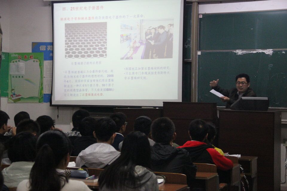 王强教授首先进行发言。王教授从四个方面发表讲话来让同学们初步了解电科这门专业。他分别讲解了电科的专业特点、课程设置、师资情况以及就业出路,指出学科之间“互为支撑,相互关联”的密切关系,告诫同学们要钻研专业知识,学会学科合理分工和学科融合,希望同学们自我调整尽快适应大学生活。