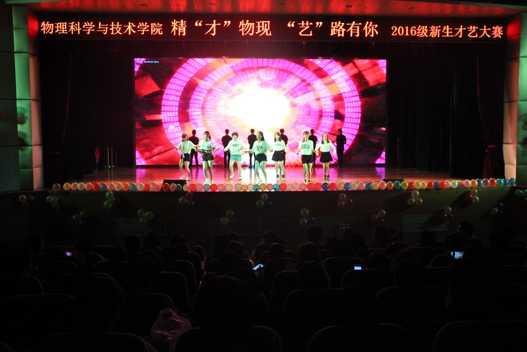 精“才”物现,“艺”路有你 ------物理科学与技术学院成功举办2016级新生才艺大赛 10月23日晚,扬州大学物理科学与技术学院团委在荷花池校区大学生活动中心三楼小剧场举行了2016级新生才艺大赛。莅临本次晚会的领导和评委有院党委副书记周春开老师,院团委书记黄锋老师,校人事处人才工作办公室主任、物理16班主任毕瑜林老师,院团委辅导员老师以及16级各班班主任老师。本次大赛由物理科学与技术学院团委主办,2016级全体新生们纷纷前来观看。