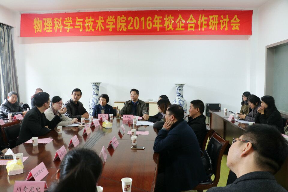 11月11日,扬州大学物理科学与技术学院2016年校企合作研讨会在物理楼成功召开。为充分发挥学校与企业双方优势,更好的为社会、为企业培养高素质、高技能的应用型人才,进一步深化校企合作,推进校企一体化办学,扬州大学物理学院举办了此次校企合作研讨会。出席此次研讨会的嘉宾有我院党委书记王春雨老师、院长曾祥华老师、党委副书记周开春老师,以及上海上嵌、川奇光电、稻源微电子、环鸿电子、豪纬交通、沁智电子、杨杰电子、鑫田电子等众多长江三角洲的企业代表,仙城中学、博师教育等教育机构的代表等。