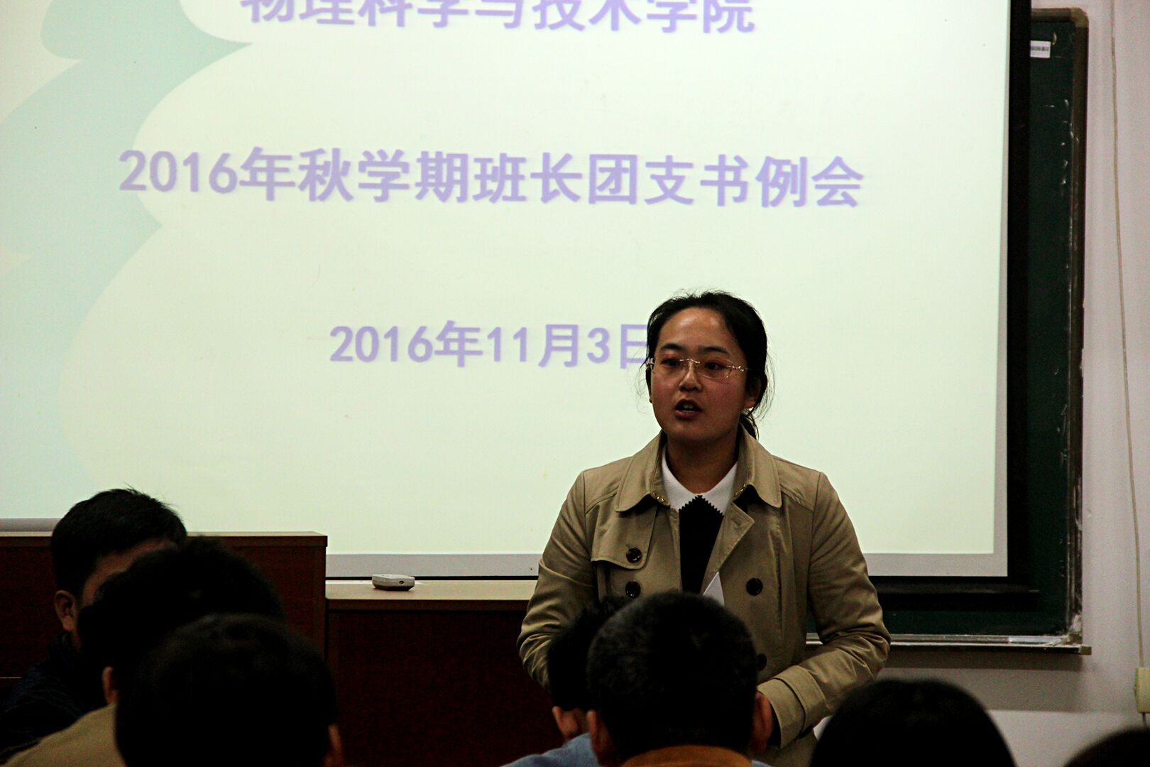 11月3日下午,院团委书记黄锋老师、辅导员张月明老师组织召开物理学院班长团支书例会。院团委办公室,学生会,社团联合会以及宣报中心主要负责人也出席了本次会议。