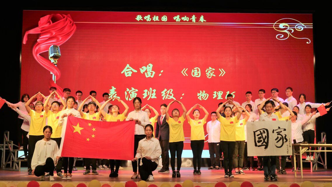 接下来是由进入合唱决赛的六个班级带来的精彩表演。雄奇豪迈、意气风发的合唱《少年中国说》,诙谐幽默、隽永深刻的讽刺相声《满腹经纶》,自强不息、深情满怀的《国家》,铿锵有力、余音绕梁的古筝独奏《临安遗恨》,满怀期望、不断奋斗的《仰望星空》,满怀祝福、追求未知的《最美的星光》,美好期望、温暖深情的《明天会更好》。最后,物理16凭借《国家》一举夺冠.......