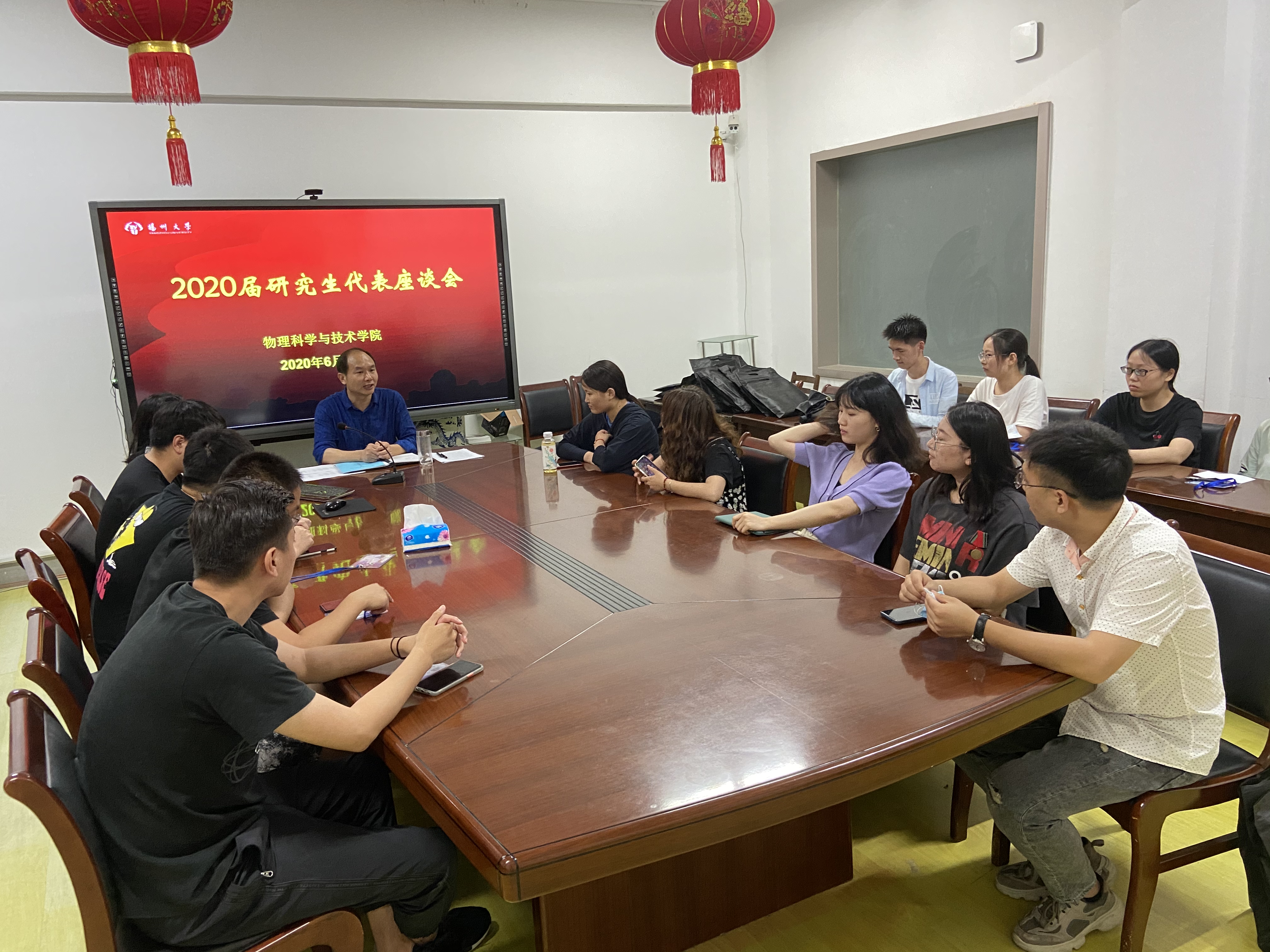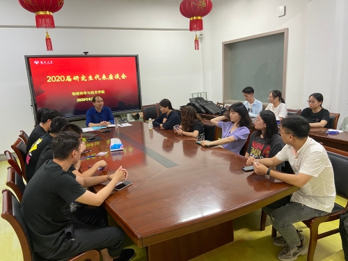 6月22日晚,物理科学与技术学院在二楼会议室召开了2020届研究生代表座谈会,学院党委副书记高红明出席并主持会议。